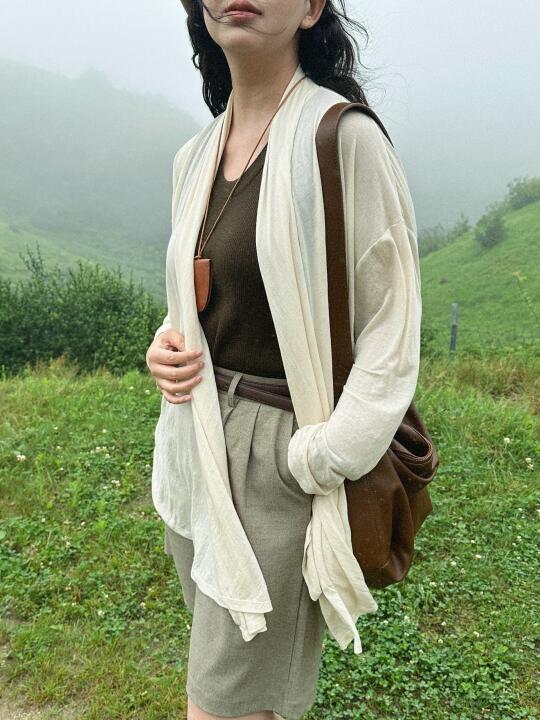 《晴野轻衫风》湖岸风裹着草香,吹得白衫轻展肩线,红标似晨阳落于衣间。