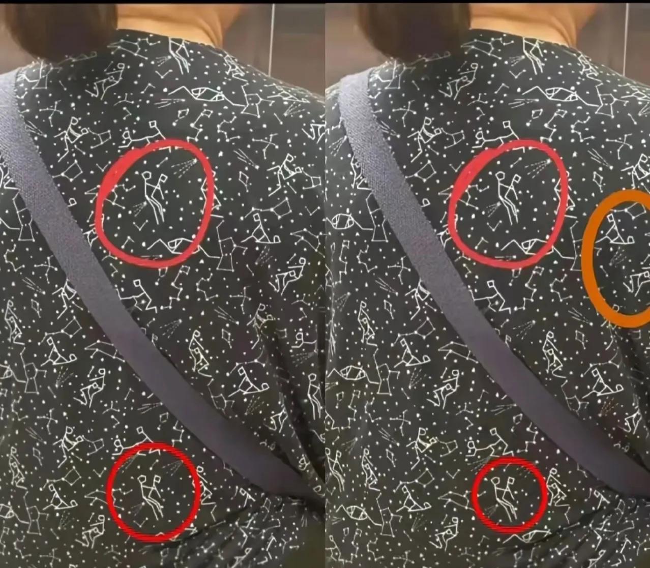 大妈衣服上这图案,简单而又不简单呀!就想知道,这是哪位设计师设计的?这样的设计能通过吗?不知道大妈对这些图案了不了解,如果了解,不知道她还会不会穿身上?