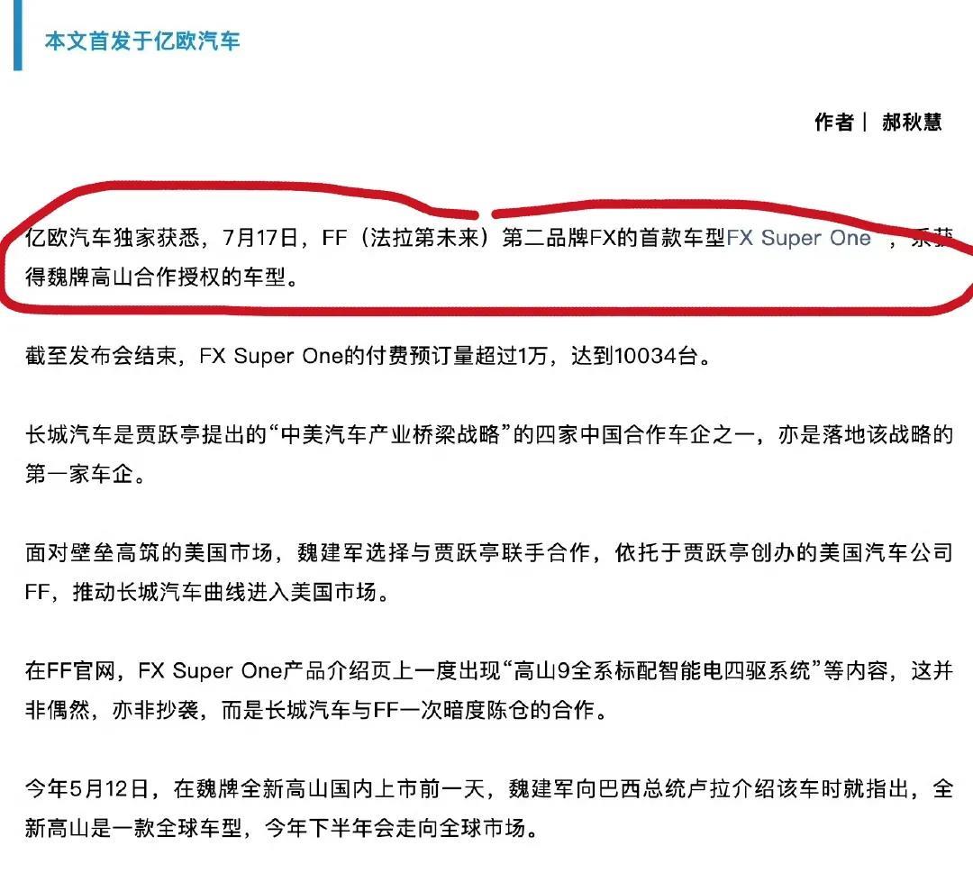 难怪贾跃亭大张旗鼓的在美国发布super one ,还明目张胆的搬用魏牌高山9的车辆及文案,原来是有魏建军的授权?