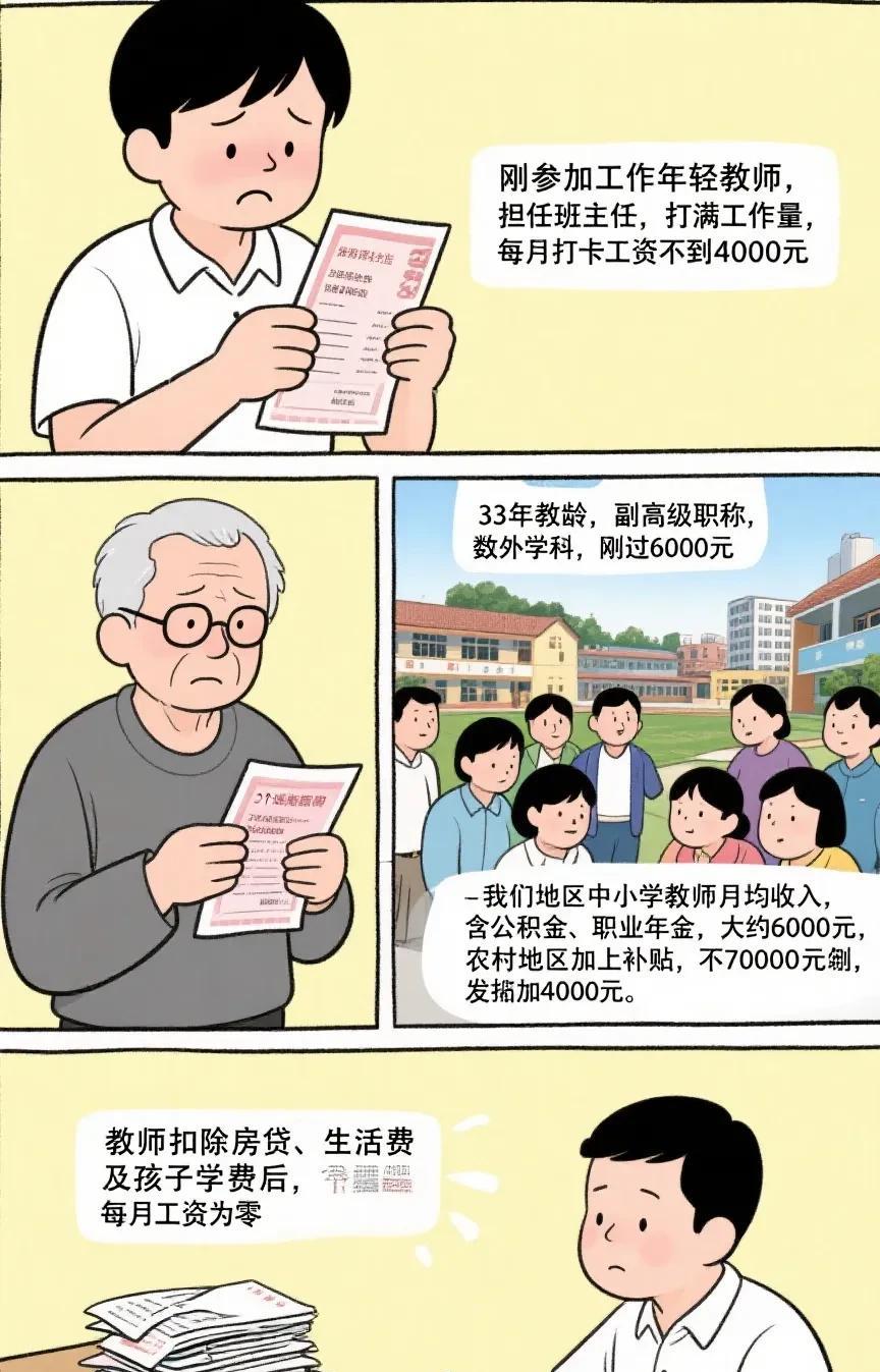 工资腰斩那晚,李老师盯着4000块的余额单,差点把家教辞职信撕成两半! 熬夜批到凌晨两点,颈椎贴膏药的钱都得算进菜钱里。一家三口挤在50平的学区房,房贷3600,娃奶粉1200,工资到账还没捂热房租就抢走。网上天天喊涨薪30%,结果拿到手的绩效比去年还少! 邻居家做外卖骑手的大哥,膝盖痛到贴三十六贴膏药,月底还能往家里拿一万二。老师呢?周末补课补到嗓子嘶哑,多上一节就要被骂“违规补课”。 铁饭碗?那是端着碗饿肚子的日子。 别让讲粉笔灰的人混成灰。