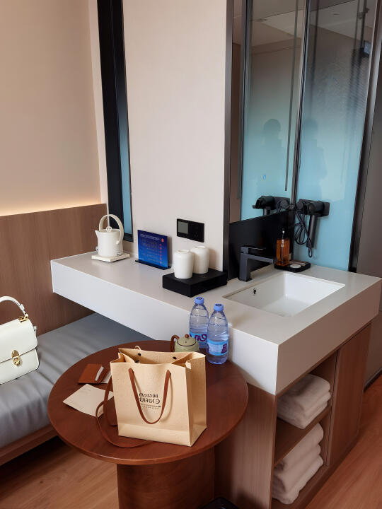 房间设施很新,采光通风隔音做的都不错!房间装修很有艺术气息,是新中式风格的哟!中间有一个庭院,可以休息喝茶聊天🍵整个房间设计品控都非常好,全屋智能,乳胶床垫和枕头配上投影超爽,卫生间也是干湿分离,配备智能马桶💕人均180性价比真的拉满~