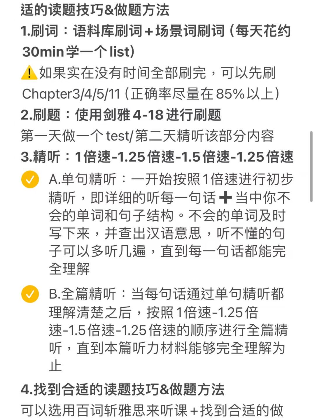 1️⃣听力=刷语料库+刷题+精听+找到合适的读题技巧&做题方法