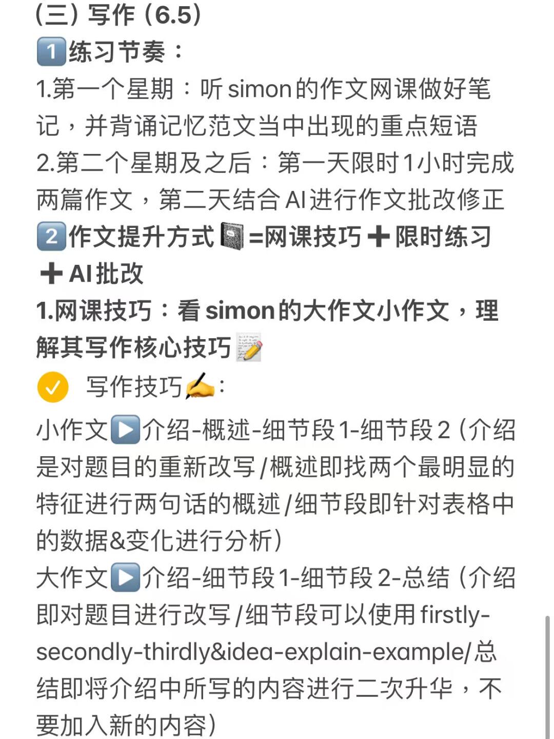3️⃣写作=网课技巧+积累固定短语+限时练笔
