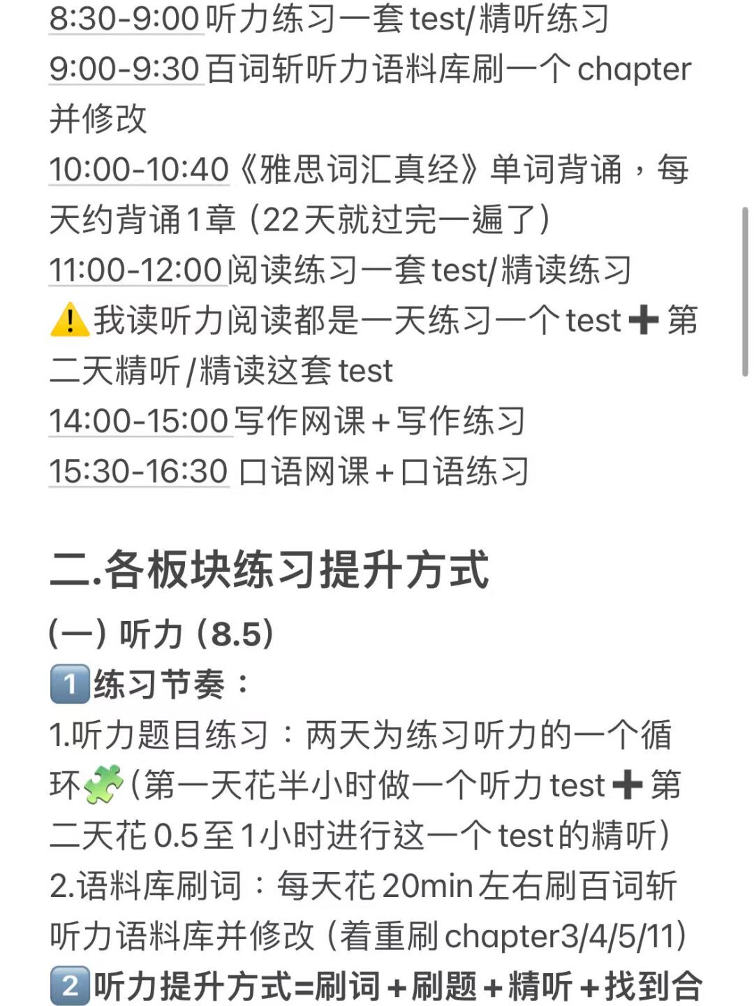 1.单词背诵:《雅思词汇真经》,每天背一个chapter(22天就能背完)