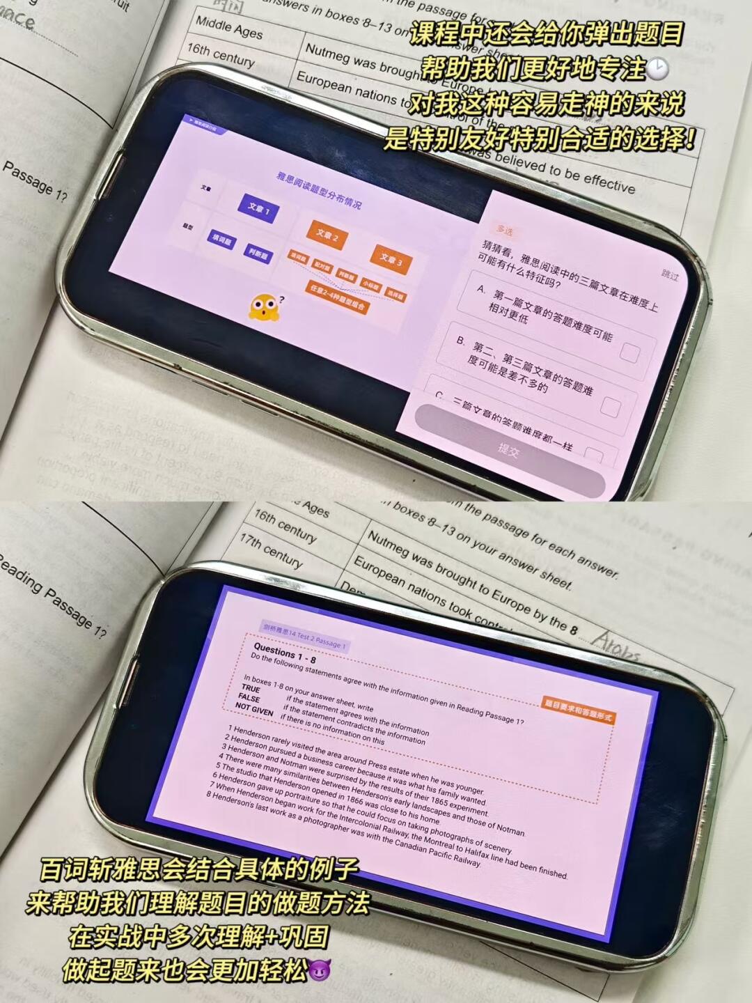 📗阅读不知道该怎么做题的话,可以听百词斩雅思的150小时提分课,其中阅读部分的提分课十分详细全面,同义词替换/真题带练/不同类型题目做题方法都应有尽有,特别适合想要自学出分的宝!