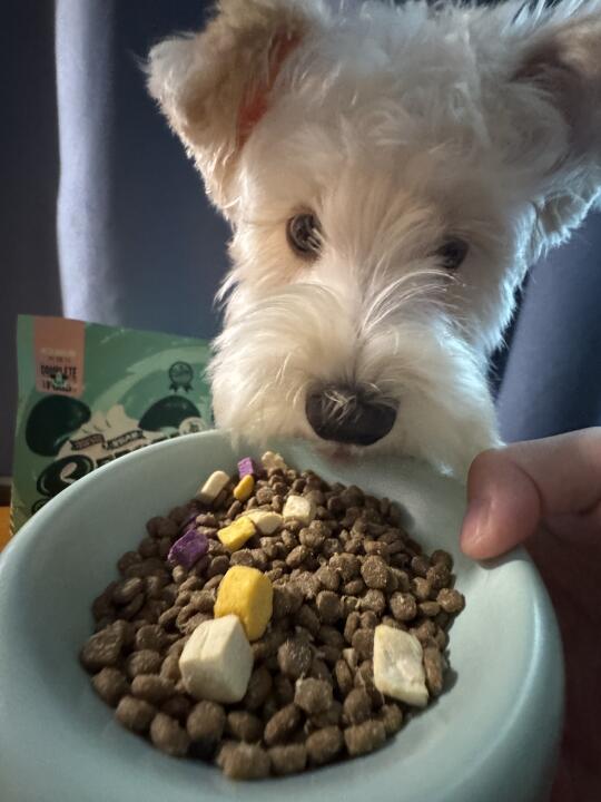 每天两大碗,冻干也要多多的,大玛仕专护鸭肉梨狗粮,好吃认证! 鸭肉+雪梨这对清火CP锁死🔥 经常有ee夸啊噗噗白净没有泪痕 饮食还是很关键的,再就是日常清洁护理 🏭大玛仕,国内10年实力研发鸭肉梨配方,自家工厂➕专利技术(发明专利号ZL201811260171.2) 现在狗子白到发光✨ 连隔壁贵宾都来问保养秘笈 (妈!快把碗焊在我头上!)"