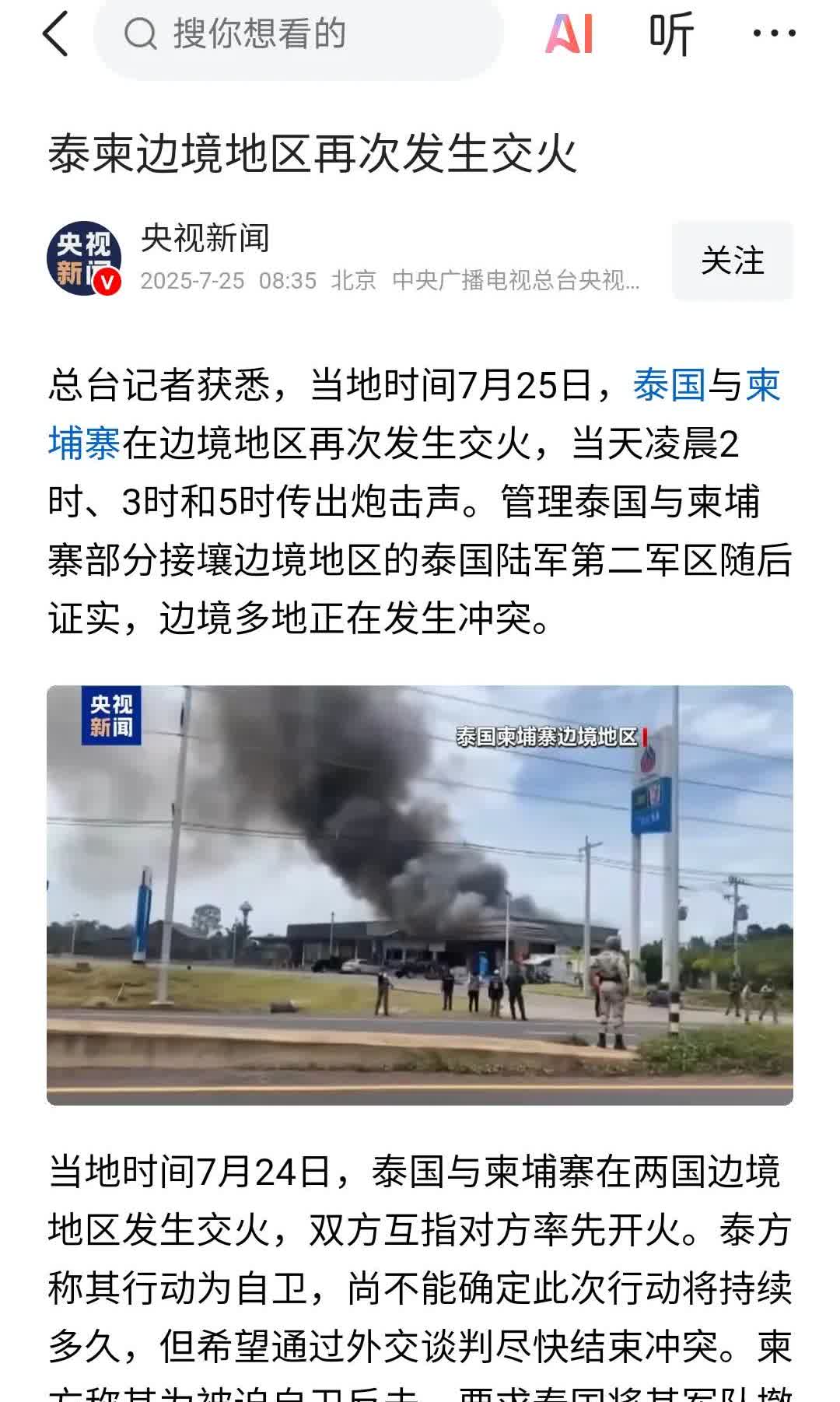 拒绝第三方介入,这似乎已成了强者一方解决冲突的共识。 泰国虽是个小国,但打柬埔寨就像狮子对羚羊,毫无压力。 柬埔寨作为弱势一方,紧急求助第三、四甚至多方介入调解,但遭到了泰国拒绝。攻势如虹的泰国坚持应通过涉事双方会谈来解决冲突。