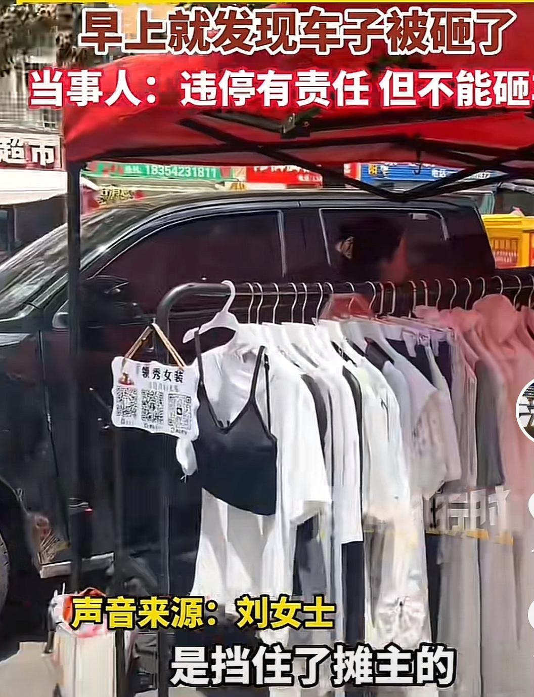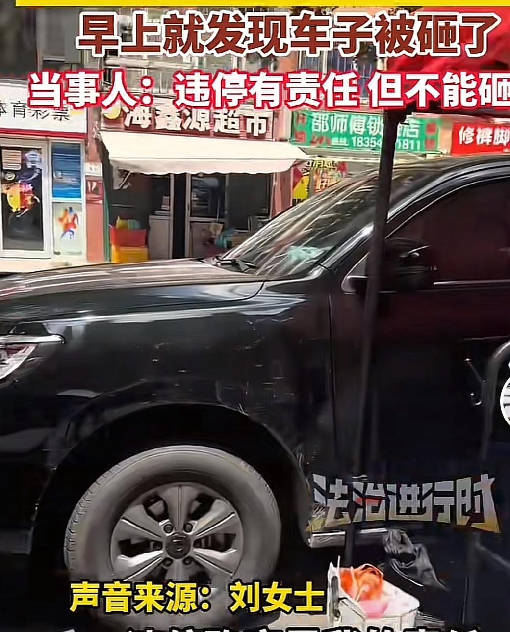 活该被砸! 7月24日,一女子自驾来青岛旅游,没找到车位,于是就随便找了个路边把