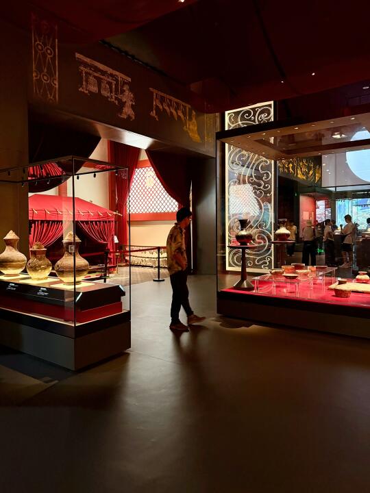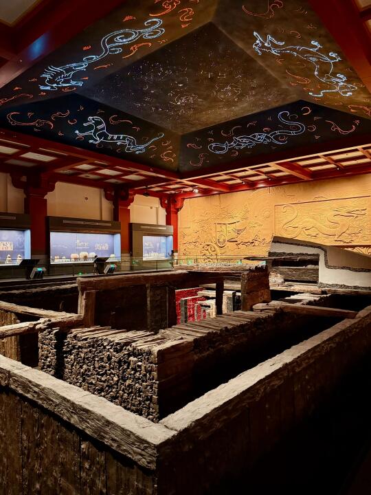 是指用上万根珍贵柏木心(黄肠),头朝里(题)层层堆叠(凑)成的巨型棺椁外墙。现场实物巨大无比,木头纹理清晰可见,站在旁边还能闻到淡淡木香。那种穿越时空的厚重感扑面而来,真心佩服古人的智慧和工艺!这种墓葬结构是西汉时期zui顶级的墓葬规格,是汉代帝王专属的最高葬制