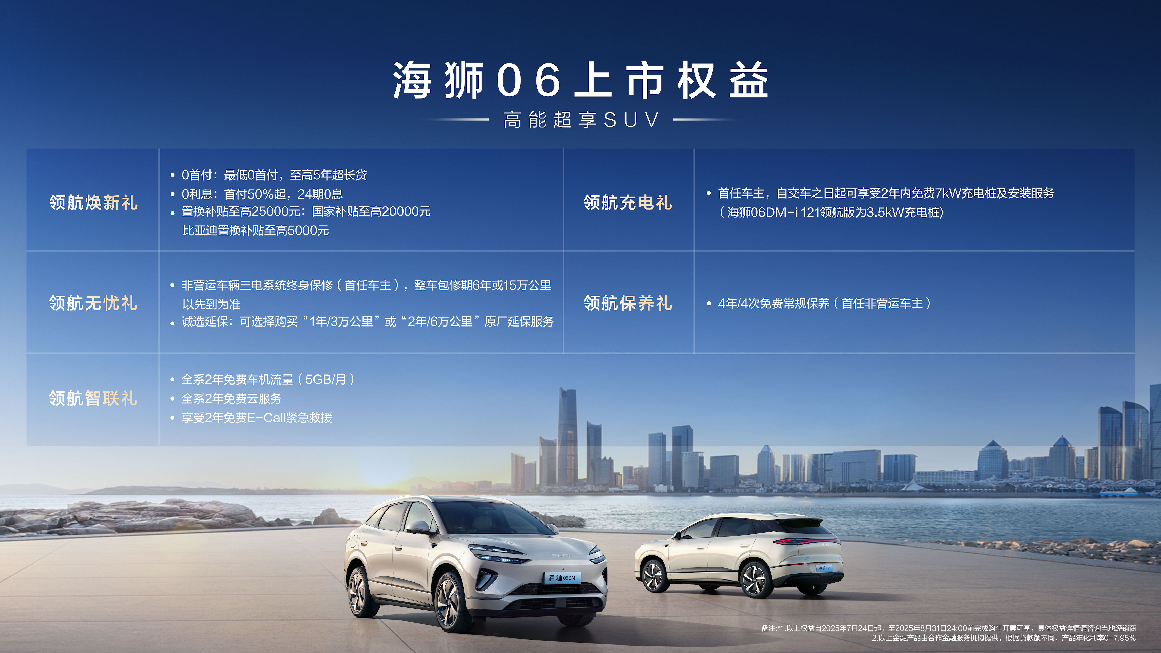 想找一款能装下全家、开得远又省心、用着还舒坦的中型SUV?比亚迪海洋网新成员海狮06来了!它颜值在线,海洋美学设计挺养眼,里面空间也够大。最省心的是,海狮06有纯电(EV)和混动(DM-i)两种选择,混动版加满油电跑个1670公里毫无压力,日常通勤用电超省,周末自驾也不用担心找充电桩;纯电版续航扎实,605公里版本跑个中长途很稳当。智能方面很到位,标配了智能辅助驾驶和云辇-C系统,开起来稳当又轻松。更难得的是,从13.98万起,就给了超100项实用配置,像座椅通风加热、智能驾驶辅助这些都齐了,算是入门即豪华,把高品质出行的舒适感和安心感都稳稳拿捏住了。感兴趣的朋友不妨去店里看看实车,感受下这“高能超享”的体验。