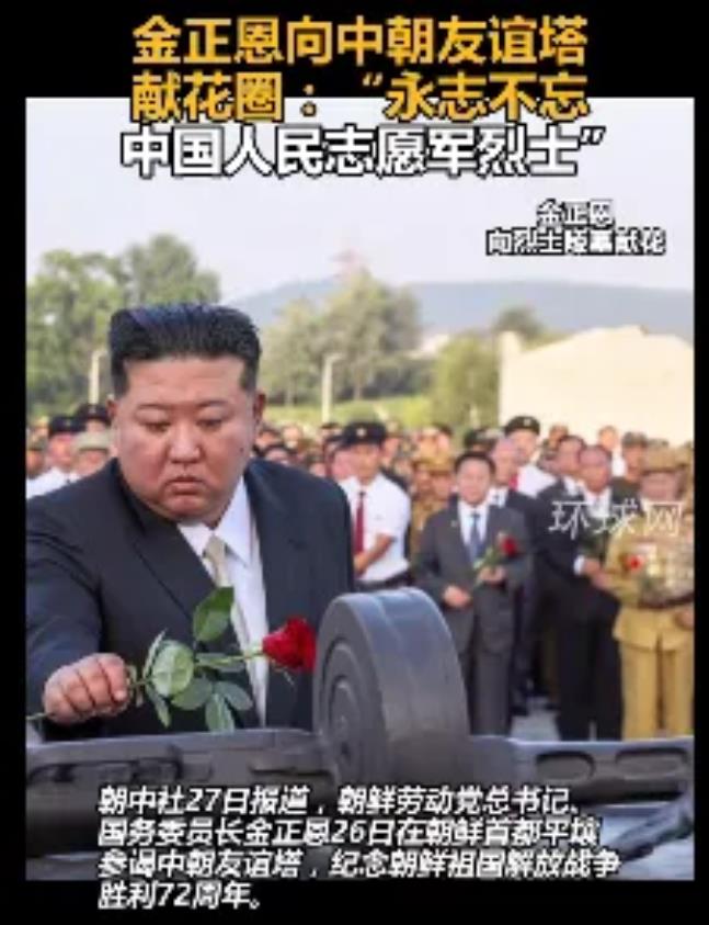 金正恩向中朝友谊塔献花圈:“永志不忘中国人民志愿军烈士” 朝中社7月27日报道,