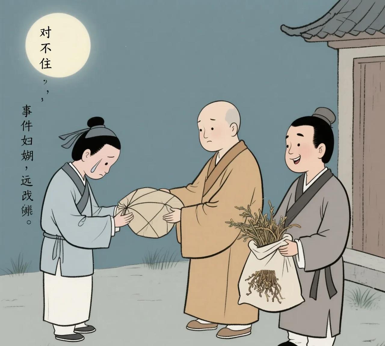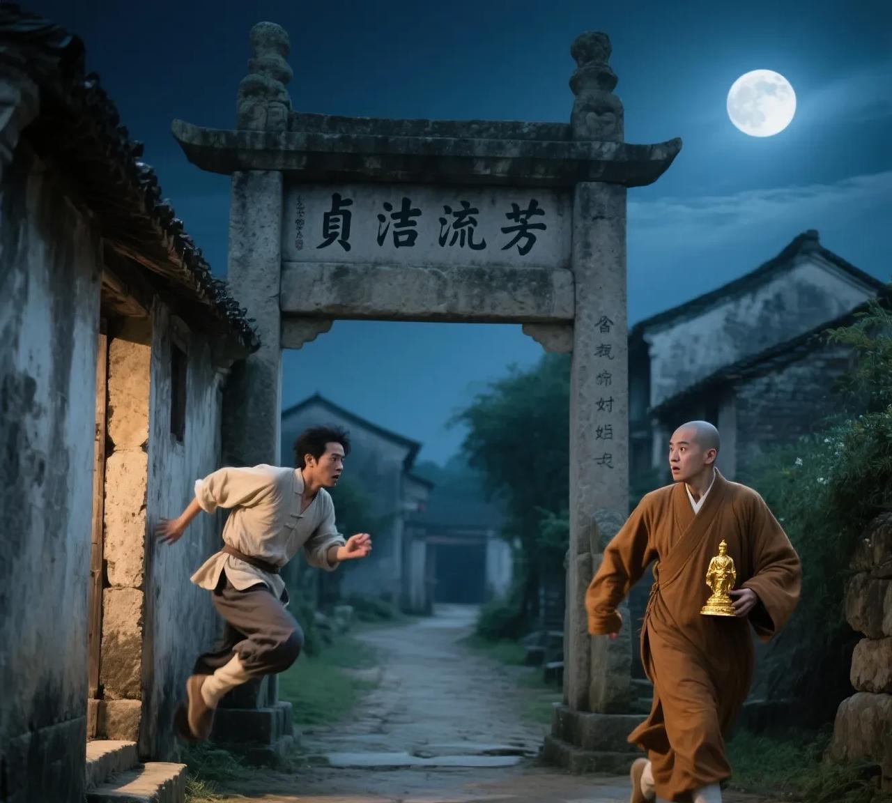 天很晚了,赶路的书生看到前面有一座破庙,就走到庙里借住一宿。 临走的时候,他看到庙里有一尊金像,就把金像偷走了! 和尚见金像被书生偷走了,就在后边追赶书生。 在追赶时,他路过一家寡妇门前,见门前立一个贞节牌坊牌,又见一个男子从寡妇家的墙上跳下逃走。 和尚脚程快,顺着土路追得急,裤脚都被路边的荆棘勾出了毛边。正往前跑呢,眼角余光瞥见那贞节牌坊下的动静,心里咯噔一下。那牌坊是石头刻的,“贞洁流芳”四个大字在月光下泛着冷光,村里谁都知道,这是给李家寡妇立的——她丈夫三年前没了,一个人拉扯着俩娃,平日里大门不出二门不迈,邻里提起都竖大拇指。 那跳墙的男子落地时踉跄了一下,慌忙提了提裤脚,头也不回地往村外跑,看那样子像是做了亏心事。和尚心里直犯嘀咕:这深更半夜的,从寡妇院里跳出来,可不是啥好事。他本想喊住人问问,可一摸怀里空荡荡的——那金像是庙里祖传的物件,虽说不大,却是方圆百里香客们凑钱铸的,是庙里的念想,比啥都要紧。咬咬牙,和尚脚底下没停,朝着书生跑的方向继续追,心里盘算着:先把金像追回来,回头再跟村里管事的说道说道这事儿。 前头的书生背着个沉甸甸的包裹,跑得上气不接。他本是个穷书生,赶考路上盘缠花光了,见那金像黄澄澄的,想着拿到城里换些银钱,既能凑路费,还能买些笔墨纸砚,一时糊涂就下了手。听着身后越来越近的脚步声,他心里发虚,脚下却不敢停,专捡田埂上的小道钻,想着能把和尚甩开。 “站住!把金像还回来!”和尚的声音带着喘,却透着股不容置疑的劲儿。 书生被追得实在跑不动了,一屁股坐在地上,喘着粗气扭头看:“大……大和尚,你追我干啥?我又没偷你东西!” “没偷?”和尚往前凑了两步,月光照在他脸上,额头上全是汗,“你怀里揣的啥?方才庙里就你一个外人,不是你拿的还能是金像自己长腿跑了?” 书生把包裹往身后藏了藏,梗着脖子犟:“我这是路上捡的包裹,谁知道里头是啥?你凭啥就说是你的?” 正争着呢,忽然听见身后有人喊:“大师!等一等!” 俩人扭头一看,正是方才从寡妇墙上跳下来的那个男子,正气喘吁吁地往这边跑,手里还攥着个布包。跑到近前,他先对着和尚作了个揖,又看了看书生,脸上红一阵白一阵的。 “大师,方才让您见笑了。”男子抹了把汗,解释道,“我是李家嫂子的远房侄子,从邻村来的。她这几日受了风寒,我娘让我送些草药过来。方才到的时候天太黑,敲门怕惊着孩子,院墙又矮,想着跳进去把药放下就走,省得旁人看见了说闲话,没成想刚跳下来就撞见您,一时慌了神,光顾着跑了,倒让您误会了。” 他说着,把手里的布包打开,里头果然是些晒干的草药,还带着股清苦的味道。“不信您回头问问村里人,我李家嫂子的为人,十里八乡谁不知道?我要是真做了啥亏心事,哪有脸来见人?” 和尚听了,眉头舒展了些。他在这一带住了多年,也知道李家寡妇的品性,想来是自己刚才急着追人,没顾上细想。 这时候,书生在旁边听着,脸慢慢红了。他瞅瞅男子手里的草药,又摸摸自己怀里沉甸甸的金像,心里像被啥东西扎了一下。人家为了避嫌,黑灯瞎火地跳墙送药,生怕坏了寡妇的名声;自己呢,为了几个钱,竟偷起庙里的东西来,对比之下,实在是不光彩。 “大和尚,”书生慢慢站起身,把包裹解下来递过去,声音低了不少,“对不住,是我糊涂。方才在庙里见这金像值钱,就起了贪念,想着换些盘缠……是我不对,您拿回去吧。” 和尚接过包裹,掂了掂,里头正是那尊金像。他看着书生低着头的样子,叹了口气:“知错能改就好。读书人讲究的是修身立德,一时糊涂不算啥,往后走正道就行。” 男子在旁边也跟着点头:“是啊,谁还没个犯迷糊的时候?能认账就是好样的。” 书生抬头看了看和尚,又看了看男子,眼圈有点红:“多谢大和尚不怪我,也多谢这位大哥……我这就把金像送回庙里去,往后再也不敢了。” 和尚摆摆手:“不用特意跑一趟,我带回庙里就行。你赶路要紧,只是记住,人这一辈子,啥钱能挣,啥东西不能碰,心里得有杆秤。” 书生重重地点点头,朝着和尚作了个揖,又跟男子道了谢,转身继续赶路去了。这回他走得踏实,脚步也稳了不少。 男子看着书生的背影,对和尚说:“大师,您心善,这书生往后指定能学好。” 和尚笑了笑,月光洒在他和手里的金像上,金像的光好像也柔和了不少。“人心都是肉长的,谁还没个被迷了眼的时候?多给人留点余地,或许就能帮人回个头。” 后来听说,那书生赶考虽没中,但回家后踏踏实实种地,闲暇时还帮着村里教孩子认字,成了个受人尊敬的先生。李家寡妇的病好了,见人就夸她那侄子懂事,说要不是他送药及时,自己还得遭不少罪。而那尊金像,依旧在破庙里立着,只是香客们都说,那金像的光里,好像多了点让人心里暖暖的东西。 故事改编自民间故事集