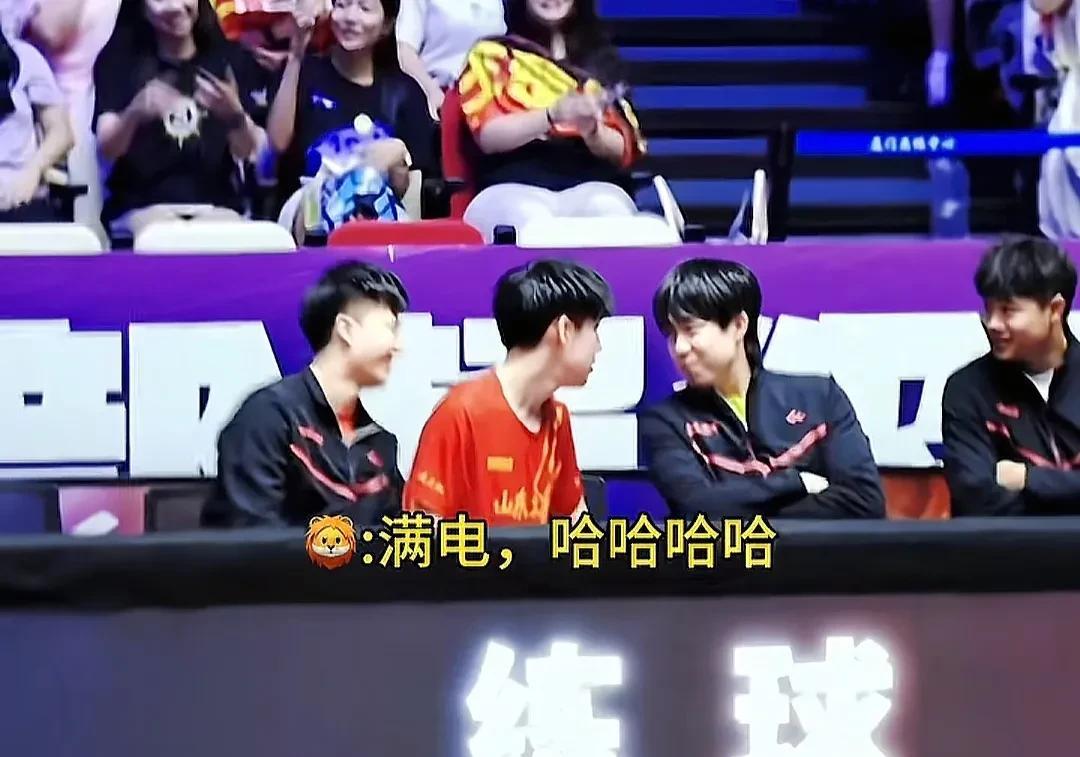 “周启豪 满电” 这又是什么梗,艾玛 这届网友太牛了,天天往外蹦新词。 今天周启豪刚刚上场打比赛,台下球迷就开始给周启豪加油打气了。这词一出把大头整蒙了,愣是不知道球迷喊的啥,又外头问黄友政,知道叫周启豪满电以后,狂笑不止,哈哈 笑的老开心了,今天上午大头在场外做指导,看见周启豪拿下一份后,不忘调侃周启豪,“真的充满电了哈”。这氛围老幸福了,感觉这就是快乐乒乓的意义吧。