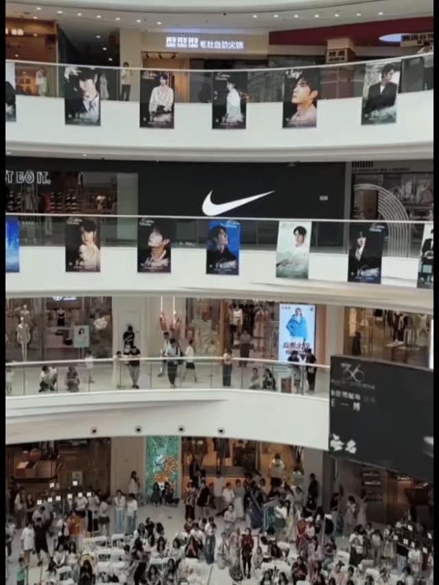 走进商场,放眼望去满眼都是王一博,知道那种感觉有多爽吗? 位置是杭州拱墅万达痛楼