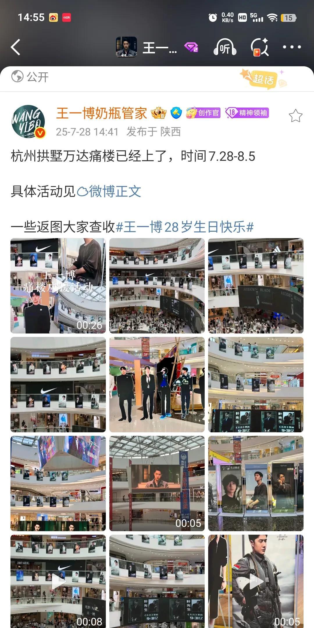 走进商场,放眼望去满眼都是王一博,知道那种感觉有多爽吗? 位置是杭州拱墅万达痛楼,日期是7.28——8.5。 能去的姐妹快去现场打卡吧,好好欣赏我们一博。 我只是看了图片,就已经沉醉其中了。 真心看不过来。 祝我们王一博平安喜乐。 一博,感受到粉丝对你炽热的爱了吗?当然,他值得! #永远的王一博#