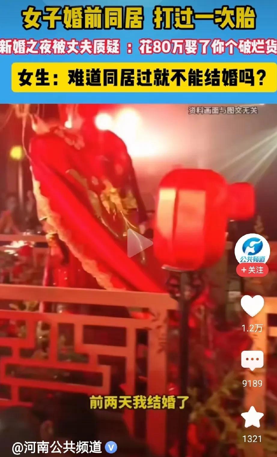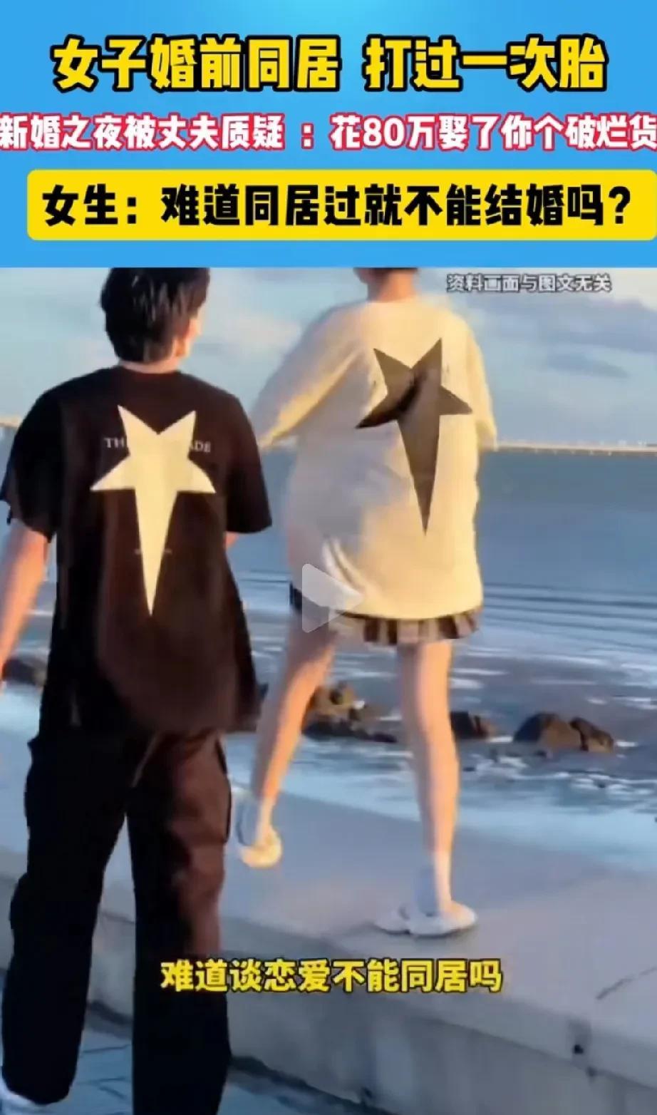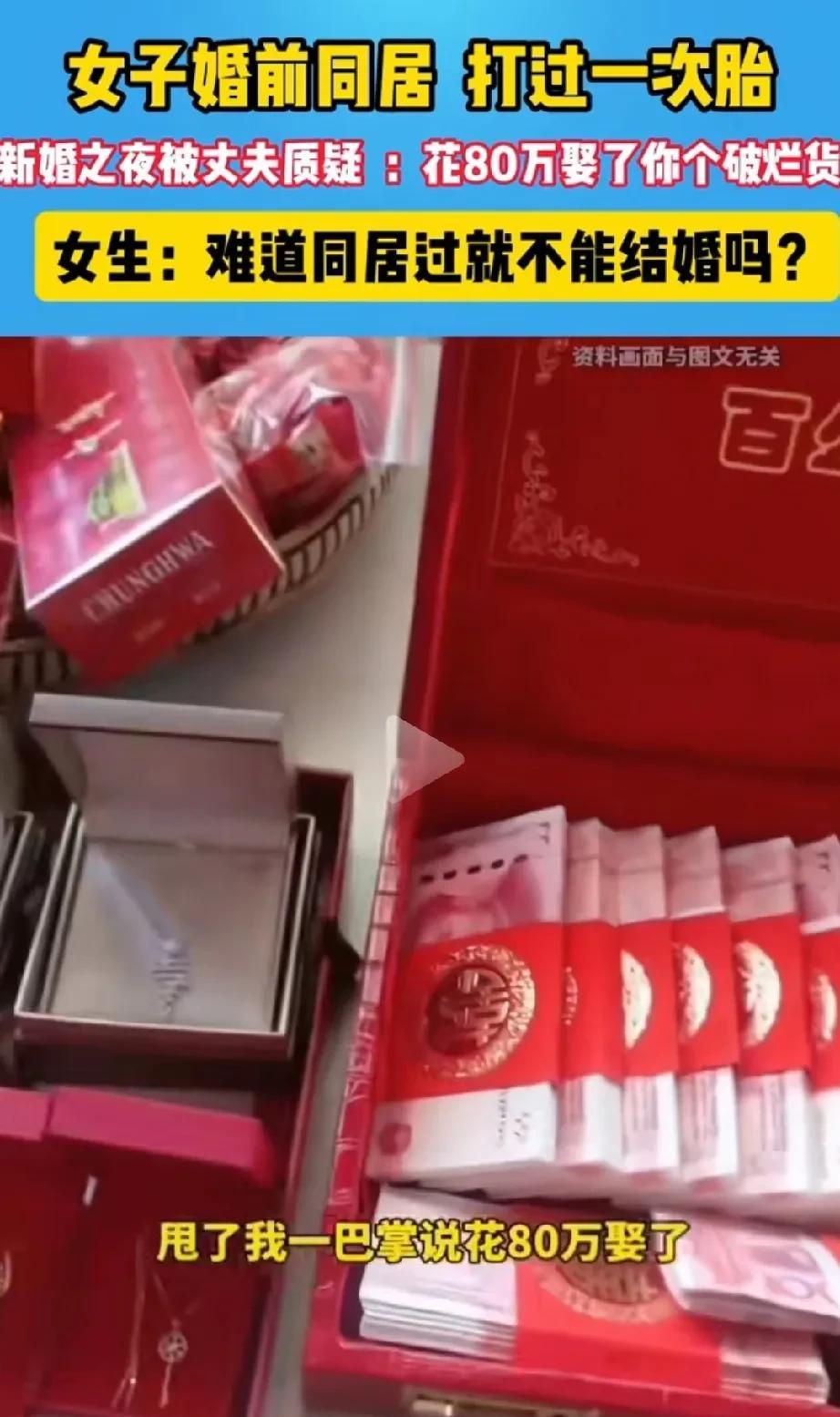 谈恋爱同居以后就是破烂货?难道谈恋爱就不能同居吗? 一23岁小姐姐,在婚前曾经与前男友同居3年,并且打过胎。 新婚当天的晚上,亲密之后,老公问她,你以前是不是生过孩子? 她听后心里猛地一惊,随后实话实说的对老公讲,自己没有生过孩子,但是打过胎。 新婚的老公听后勃然大怒,打了他一巴掌,然后说,花了80万娶了个破烂货! 小姐姐听后很委屈,她哭诉道,难道谈恋爱就不能同居了吗?同居以后再结婚就是破烂货吗? 对此,网友们说法不一,现在,婚前试婚的行为其实很普遍,当然,如果试婚后还是和本主结婚,那就不存在什么问题,但是如果试婚后发现不合适,更有甚者,可能怀孕了,就只能打胎了事。 然后再嫁结婚,老公很可能会介意这个事,所以有网友说,问题不在于婚前能不能同居,甚至是不是打过胎,关键在于,下一次婚恋有没有如实相告对方。 如果已经如实相告对方,对方也能够接受释怀,那自然不存在所谓的破烂货一说,毕竟人不是商品,女人更不是。 所以说在现在这个时代,既然普遍存在着婚前试婚,恋爱同居等情况,而一旦同居或者试婚失败,那么在下一次婚恋前,一定要如实相告。 而且从这个小姐姐的话语中可以得知,这个男子娶这个小姐姐花了80万,可能包括彩礼,汽车,房产等等。 其实设身处地想一下,这位小姐姐就能够明白,为啥她老公会甩她一巴掌,然后骂她破烂货。 各位网友,怎么看这个事呢?欢迎评论区留言讨论