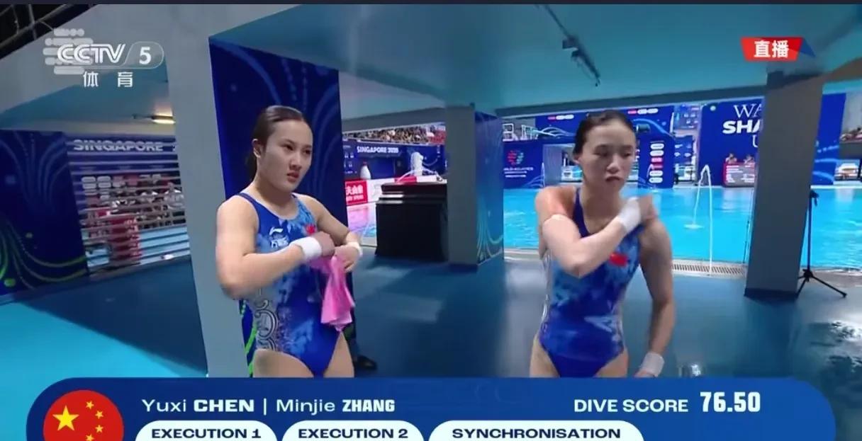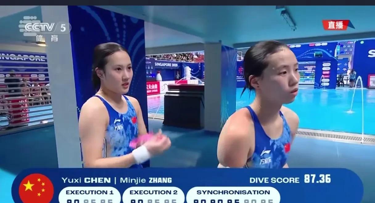 陈芋汐这稳定性,真的是太可怕了!大家都期望小将谢佩玲打败陈芋汐拿单人冠军,可是真正关注比赛的跳水迷,都知道这个可能性不大,看看陈芋汐双人跳的个人得分,小将谢佩玲除了超常发挥,真的没啥机会! 双人跳,两人实力不俗,配合也很是默契,这是他们各跳得分。 陈芋汐 掌敏洁 第一跳,8.5,9.0,9.0;8.5,8.0,8.0 第二跳,9.0,10,9.0;8.5,8.5,8.5 第三跳,9.0,9.5,8.5;8.0,8.0,8.0 第四跳,9.0,9.5,8.5;9.0,8.5,9.5 第五跳,8.0,9.0,8.0;8.0,8.0,8.5 第二位评委对陈芋汐真是喜欢啊,得分都是9.0以上的。[大笑] 看这里的得分,掌敏洁的水平也挺高的呀,每跳都是8.0打底,高的也有9.5,单人的时候,怎么就觉得一般般呢,一直都跳不出来。 不过这俩年纪都不小了,感觉洛杉矶奥运,他们俩搭档双人的机会不大啊。今年的崔家溪值得期待,不知道后面两年还会不会有厉害的新人冒出来?