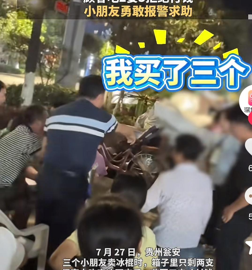 真被无赖给恶心到了! 贵州,三个小学生模样的小男孩,利用暑假期间在夜摊卖冰棒,他