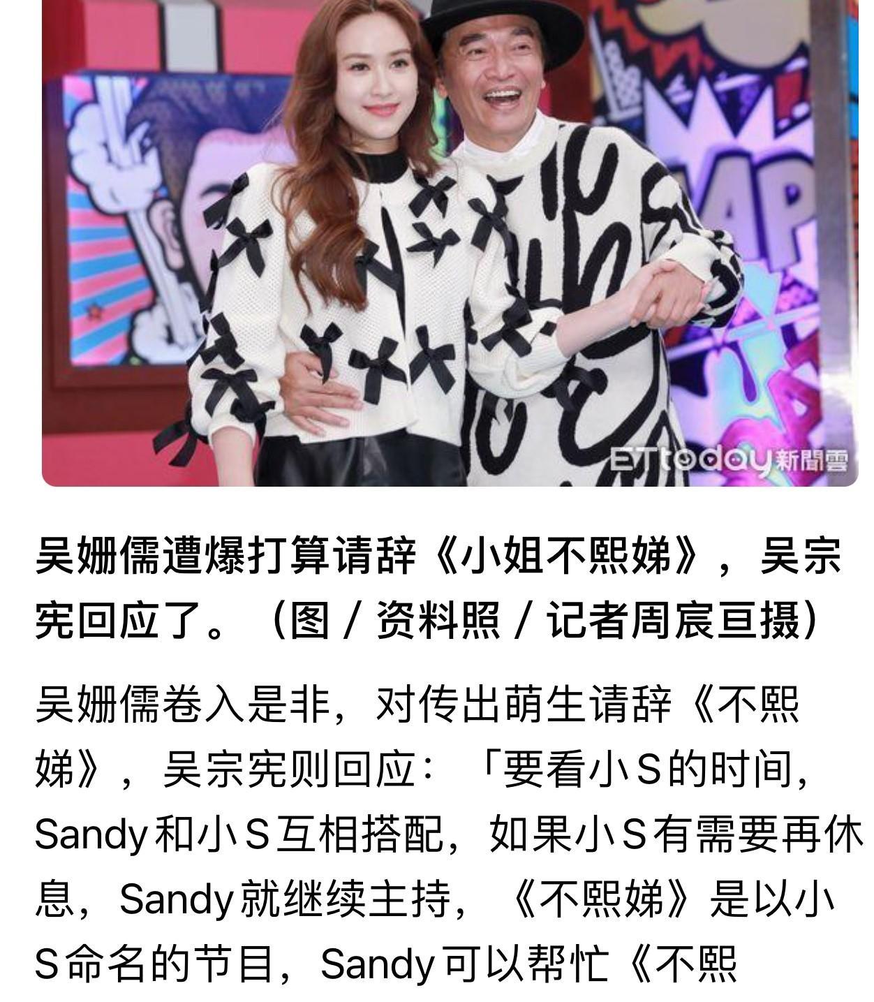 用人在前,不用人在后!吴姗儒真成了弃子了!难怪吴宗宪会为女儿打抱不平…… 《小姐不熙娣》节目组太不厚道了吧?!还专门为小s发了公告出来! 称小s休息好了就回来,他会告诉大家,就这么简单…… 对于吴姗儒代班节目中踩刘宇宁头像也只是以出现错误一笔带过!称还在考虑为了节目的可看性要不要出外景…… 最重要的是重新确定金钟奖报名只有小s和搭档派翠克,没有吴姗儒! 看来湾湾媒体报道小s反对吴姗儒报名金钟奖是真的! 小s看似没回应、其实小动作就没有断过! 讲真哦 吴姗儒代班《小姐不熙娣》这半年的时间,是完全有资格参加金钟奖报名的,就这样被拿下来,确实很可惜!