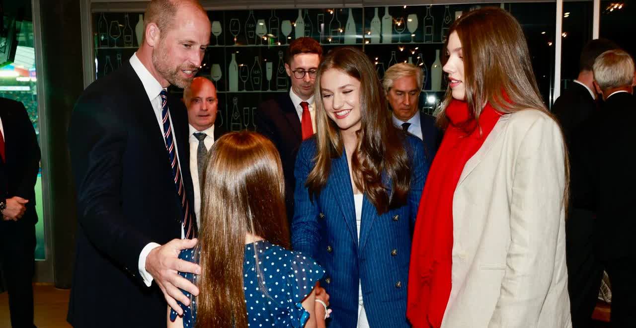 3位金发公主同框,头发闪闪发光,威廉王子的头顶秃的发亮。 西班牙公主莱昂诺尔和妹妹索菲亚公主和英国夏洛特公主见面,并一起观看比赛。 欧洲王室更加偏爱公主,颜值在线的时间比王子更长。不过西班牙国王费利佩六世看起来比同龄人状态更好。
