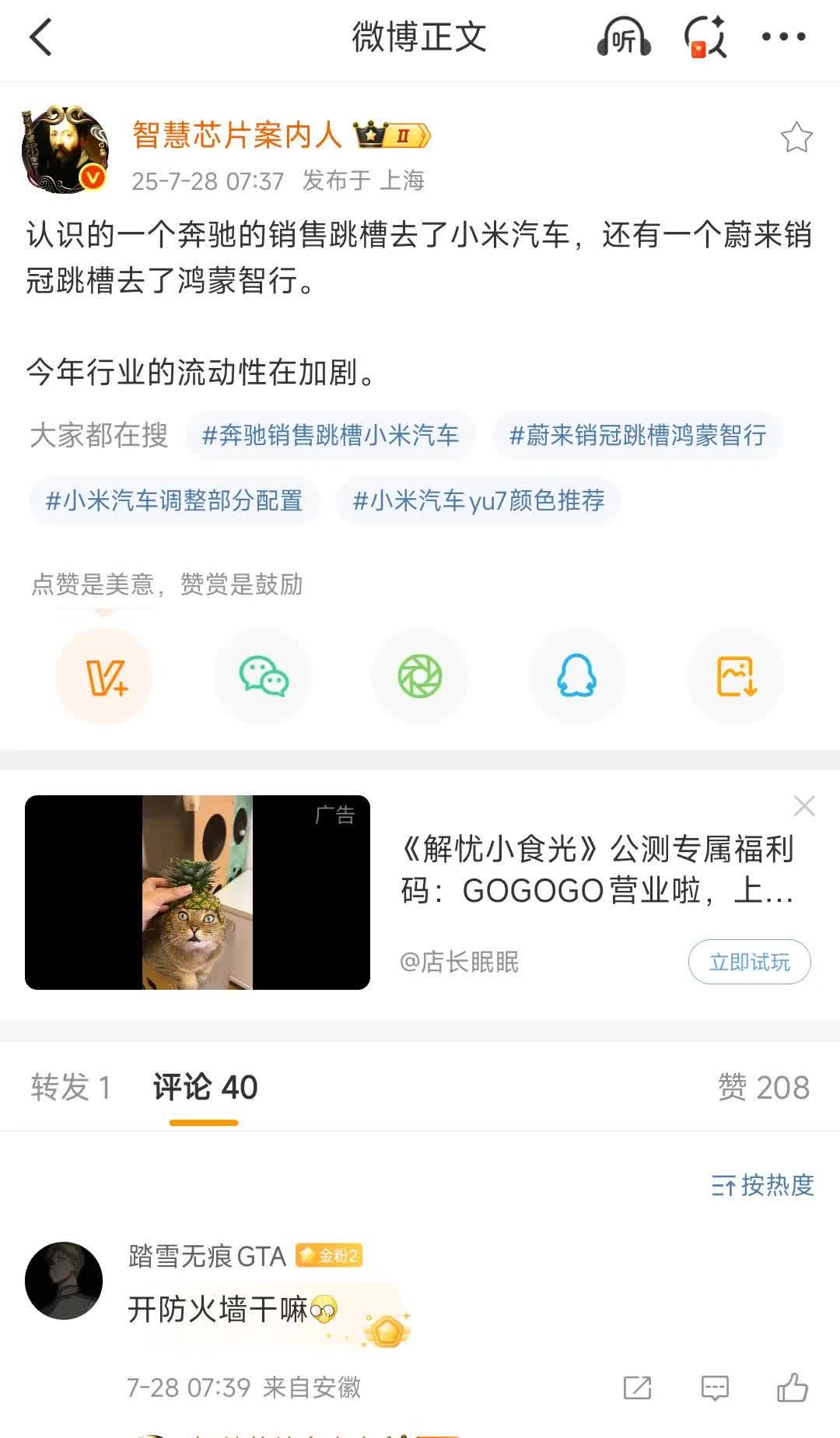 小米车主竟和友商对着干,喜欢的车,等一年又何妨?小米汽车上周新增订单再次突破1万台,等一年也买,友商的车倒贴5000补偿订金也不要。这个世界就是这样,有钱难买我愿意。[大笑]小米汽车的销售太好做了,等着车主提车就行。难怪奔驰销售都跑去卖小米汽车了。[捂脸]