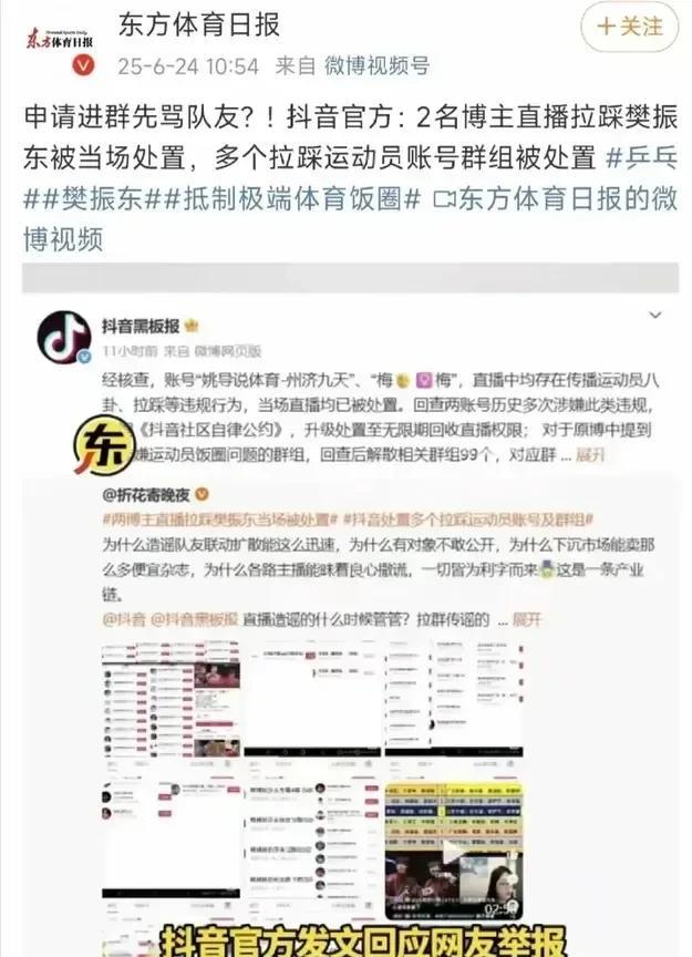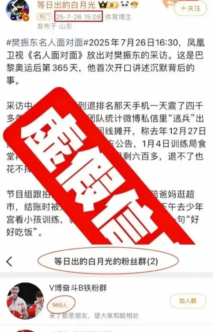 乒超4天的激战结束了,很高兴看到东子整个技战术体系的调整、精进,下一战就是德甲了,我也从未如此期待他早点离开! 离开乒乓球舆论中心这个是非之地,离开这个饭圈泥潭,结束这次专访掀起的腥风血雨,希望他收获内心坚定、安静的力量。 就像他说的,如果连身心健康都没有办法,何谈继续!运动员的身体也没那么扛造的,达不溜梯梯如此密集的赛事之下,大家其实都是一个命运共同体。 作为球迷,我一直以来的观点就是,他是运动员,如果他成绩不行、打得不好,我接受球迷的批评,但无法接受的是人身攻/击,是无止尽、无底线的造.谣。 远的不说,就以这次访谈为例。 运动员真挚的吐露心声,怎可沦为谣 言的温床? 然后,特意去了解了一下,那些人自己不觉得可笑吗? 凤凰卫视的专访是下午4:30发布的,这个谣/言是下午3:08开始散布的。 也就是说,他采访都还没开始,谣/言就已经准备好了,猖狂到连凤凰卫视都要亲自下场警告! 想到他说的“有组织、统一文案”,不免悲从中来。 就好比当一间房子里,你看到了一只蟑螂,一定还有你没看到的99只。 而这样的cp粉群,还有几百个,几十万人! 如果单纯磕cp,其实是不会招致天怒人怨的。 但这些粉群背后,是一条完整的非法产业链,是以造/谣、辱/骂队友来吸黑流量变现的mcn机构,以及他们的伥 鬼 们!是30块每月的付费粉丝群,是直播间以谣/言、辱/骂队友渲染粉丝情绪之后的带货量。 无良主播一条谣 言,在500人的粉群中一秒传播,几百个这样的群,铺开的受众便是几十万人,就好比上次的“雨果上海密训”谣 言,短短两天铺天盖地,说的有板有眼,无辜的人如何不心累呢? 谁喜欢一整天抱着手机撕扯啊,也别把这盆脏水泼到为他发声的球迷身上,是职业粉丝,是行政化饭圈,还有追私牟利的那几百个粉群。 竞技体育,如果不能带给人精神的正能量和激情,请问价值何在? 另外,在失衡的图景里,“和”的表象常以最温良者的缄默为祭,当温良者不再甘于缄默,“破坏团结”的荆冠便骤然加身,可错的从来不是发声反抗的人,而是施 暴者。
