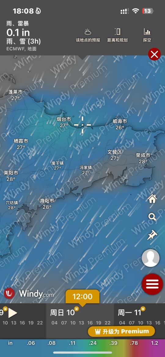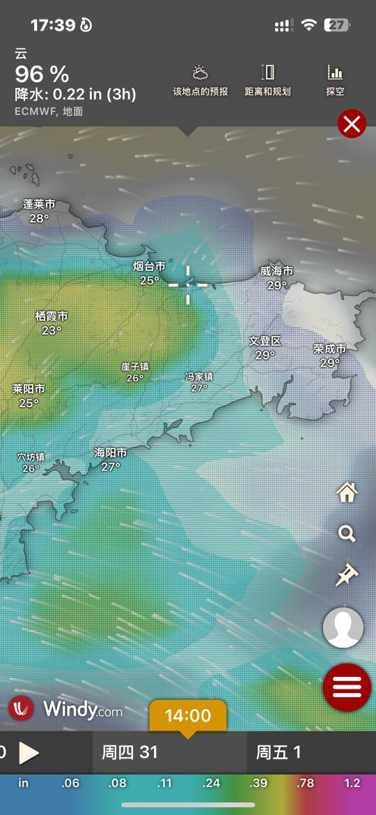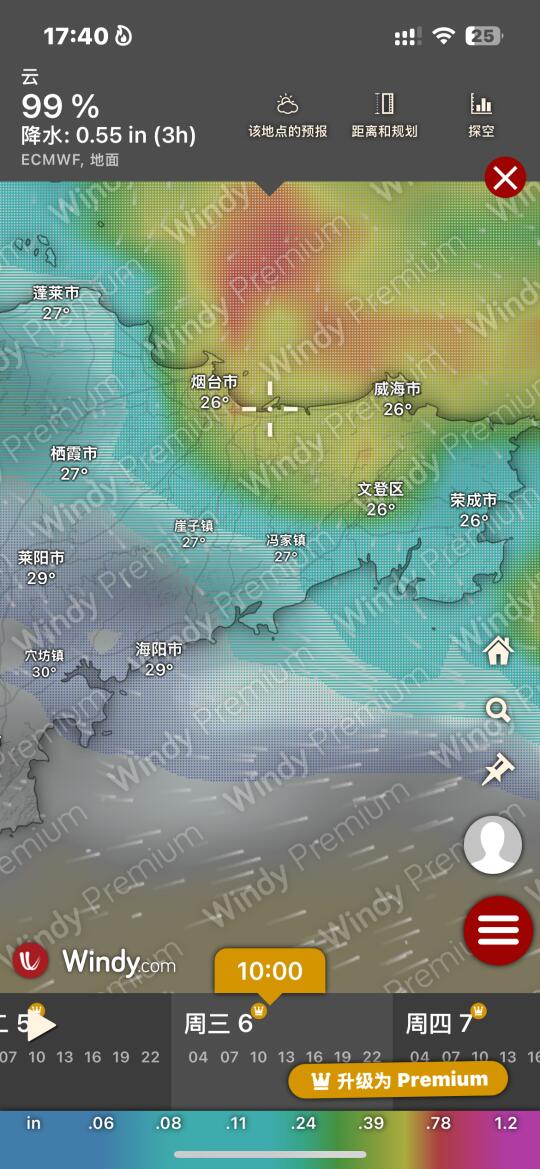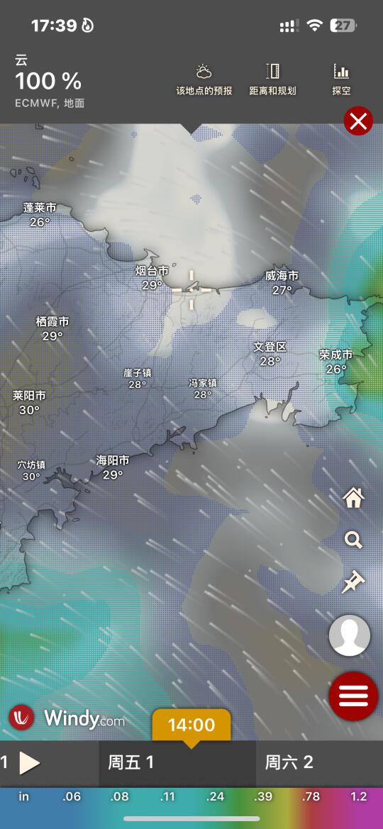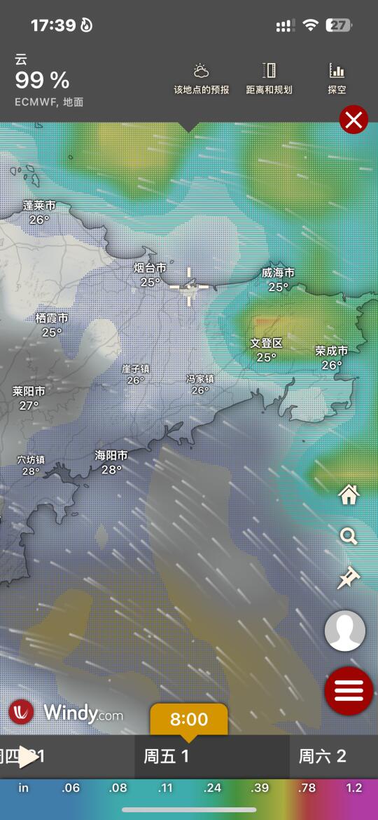Hi.宝子们好,欢迎来烟台旅游观光!天气基本三天内准确度高!