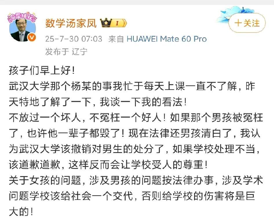 作为湖北人,这次不站武汉大学,有三个理由。 第一,小孩都知道有错就改,武汉大学作为湖北排名前三的顶尖高校,明知对男同学肖某处罚有错(法院已经宣判),却至今装聋作哑,官方微博不回应,官微关闭评论,这根本不算一流高校的行事作风,对不住武大校训“自强,弘毅,求是,拓新”,尤其是“求是”二字! 第二,面对如此巨大的舆情,连武大校友梅新育都出来呼吁母校给诬告的女学生处分,并启动调查。但是武大还是装作没看见,有错也不认,这不是高等学府该有的作风。 第三,只知道回避,太丢人。开始还只是涉及到两个家庭,现在是涉及成千上万的网友,即便把武大网给断了,也不可能回避如今的现实! 高高在上的武大,不过如此。