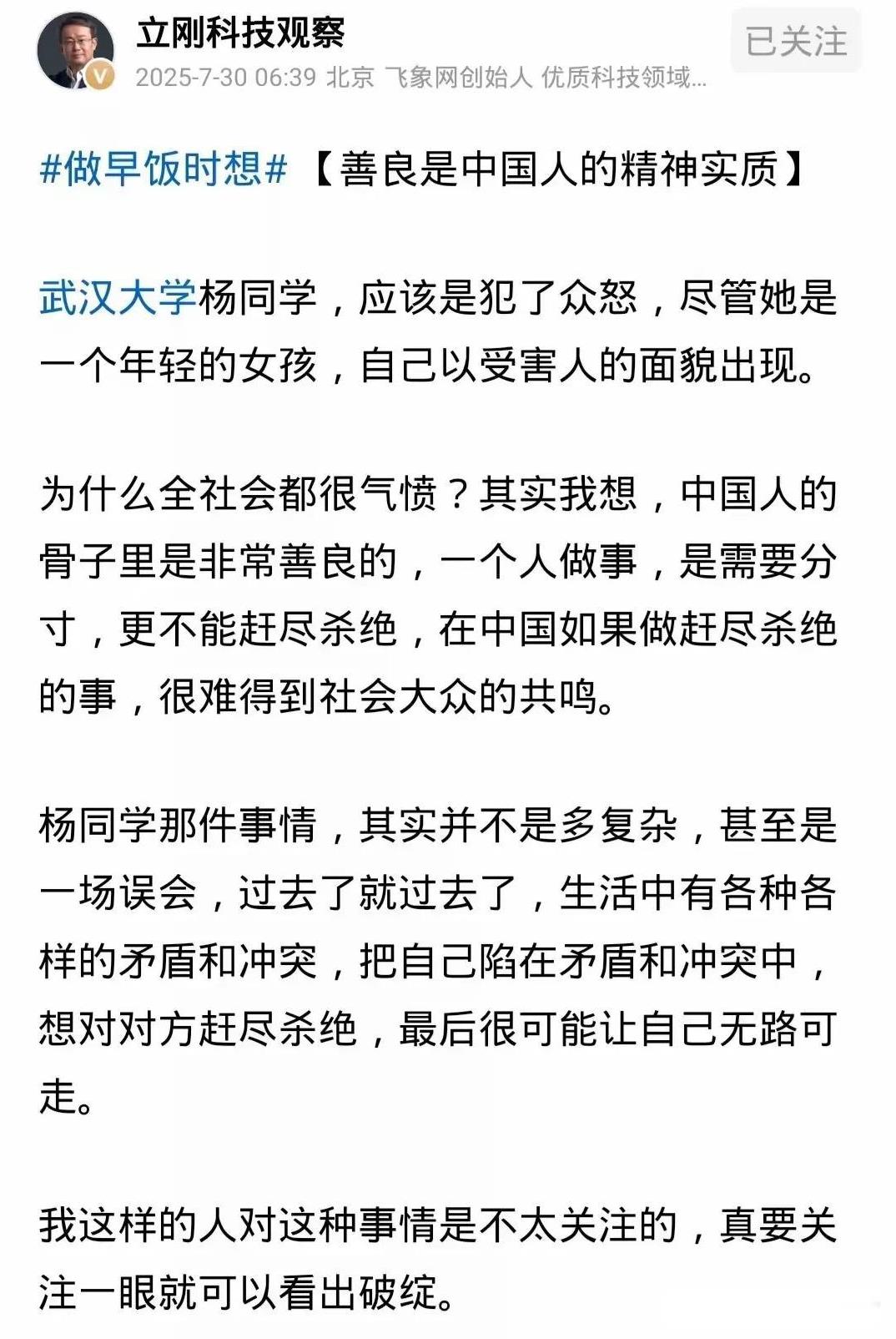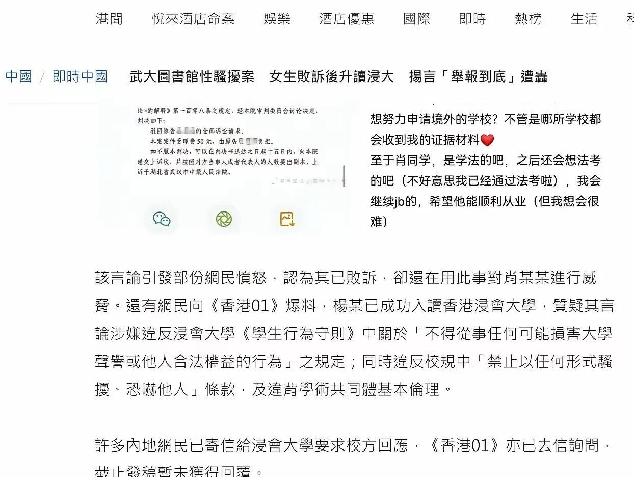 根据公开可查的信息,在武汉大学肖同学“图书馆事件”中,明确为肖同学发声、呼吁学校公正处理的知名人士及相关观点如下(信息来源为公开报道、社交媒体发言等): 公开表示,法院一审已驳回杨景媛诉求,认定肖同学行为不构成性骚扰,武汉大学应据此撤销对肖同学的记过处分,并向其道歉;同时指出杨景媛需尊重司法判决,校方对其硕士论文问题也应公正核查,不应沉默。 多次发文谴责杨景媛行为“严重败坏武大声誉”,呼吁学校开除其学籍、撤销硕士学位及法考资格;牵头发起校友联名信,要求校方公开调查结果,否则暂停校友捐赠,并坚定支持肖同学依法维权。 虽未直接提及事件,但在公开讲座中强调“程序正义”的重要性,被网友关联至该事件中校方调查程序的瑕疵问题,其观点间接呼应了对事件需依法依规、证据确凿处理的诉求。 明确表示“法律已还男孩清白,武大应撤销处分,处理不当就该道歉”,认为学校需坚守“不冤枉好人”的原则,维护学生权益与自身声誉。 直言杨景媛“欺人太甚”,校方当初对肖同学的处分存在明显问题,呼吁学校正视错误、纠正处分。 强调“司法判决应成为高校纠错的依据”,暗示武大需根据法院判决撤销对肖同学的不当处分,体现对法律与事实的尊重。 质疑杨景媛法考资格的合规性,同时关注肖同学的处分问题,认为学校应重新审视当初的决定,确保处理结果基于事实与法律。 通过社交媒体为肖同学发声,呼吁澄清事实,还原其清白,批评网络暴力对肖同学及家庭的伤害。 发文支持肖同学母亲向诬陷者追责,尤其呼吁追究杨景媛的刑事责任,认为其行为已构成对他人名誉与权益的严重侵害。 发布《最该接受谴责的是武大》一文,批评校方在证据不足的情况下仓促处分肖同学,导致其遭受网暴与精神创伤,要求学校纠正错误。 发表《武大图书馆事件,不能这么欺负人》等评论,指出校方处分程序草率,未充分调查便屈服于舆论压力,呼吁学校尊重法院判决,撤销处分。 公开举报杨景媛存在学术不端行为,向武大及香港浸会大学提交证据,要求撤销其学位;因持续曝光此事,自称遭遇施压仍坚持发声,间接支持肖同学维权。 发起联署声明,要求校方公开事件完整调查报告,撤销对肖同学的错误处分,维护学校公正形象与学生权益。 发文指出,武大在事件初期证据不足的情况下对肖同学作出处分,造成其身心重创;法院判决已明确事实,学校应立即撤销处分,给肖同学及社会一个合理交代,避免声誉受损。 15.网友调侃:武汉大学再不及时纠正就成了“诬”汉大学了。 以上均为公开可查的真实发声,反映了社会各界对事件需“以事实为依据、以法律为准绳”处理的共识。武汉大学作为知名高校,若持续忽视司法判决与公众呼声,拒不纠正错误,不仅会伤害肖同学及其家庭,更可能损害自身公信力。期待校方正视问题,及时撤销处分,彰显对公平正义的坚守。