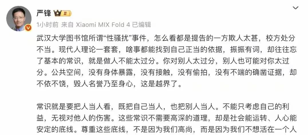 根据公开可查的信息,在武汉大学肖同学“图书馆事件”中,明确为肖同学发声、呼吁学校