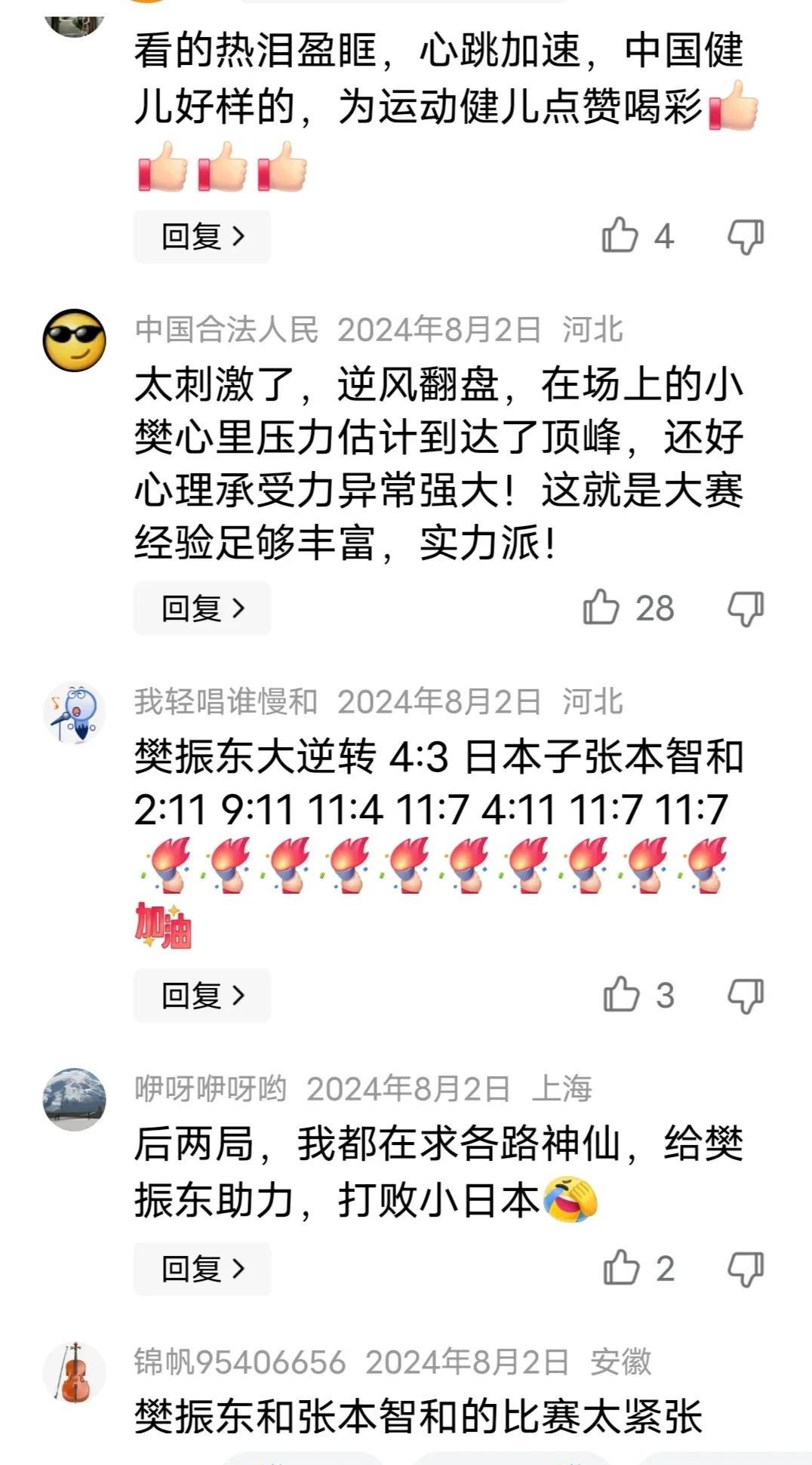 一年了! 去年今日,有多少球迷在为异国他乡八一之战的樊振东牵肠挂肚。毫不夸张地说,那一晚真的紧张到食无味,寑难安。 虽然,我是一眼没敢看直播的那一部分! 但那晚的我,同样被极度紧张和忐忑的情绪淹没。 我记得那天是周三还是周四,反正第二天是工作日,比赛是在晚上11点开打, 想看又不敢看,爱意总是会让人变得胆怯的。 所以,自欺地安慰自己比赛开始时间太晚了,第二天还得上班、得早起呢,看不了直播,睡觉吧。 其实就是太在意、太紧张,也知道在当时队友已经止步的情况下,他一定承受着很大的压力,比赛会很难打,怕万一有个什么三长两短 都无法想象,也消化不了那种巨大的情绪。 没办法,他是一个100分的运动员,而我,只是一个懦弱的球迷。 其实根本也睡不着,心里每分每秒都在牵挂,就硬熬着,看了下时间熬到了将近凌晨1点,估摸着结果肯定也出来了,但是连结果也不敢上网查。 内心挣扎了一番,还是摸出手机颤颤巍巍地点开了页面。 真的毫不夸张,打开网页的那一瞬间,手都是微微发抖的,黑暗中唯有一抹手机屏幕的亮光和着自己心跳的声音。 第一秒眏入眼帘的,就是“樊振东惊天逆转,险胜张本智和”这类标题! 配图是,他那件蓝色上衣已经完全被汗水湿透了,紧紧地贴在身上,豆大的汗水从脸上滑落,额前的头发也成了条形码,他仰起头,张开双臂庆祝。 以及网友各种各样的“奇葩”姿势: 有跪地为他求 神 拜 佛的,拿着毛巾在电视屏幕上为他擦汗的,隔着屏幕把饮料吸管放在他嘴边给他补充能量的,还有拿着玩具枪指向张本的。 什么感觉呢,就是这一整天、或者说从头一天就已经开始的所有的焦虑、不安、压力,在那一刻终于消失了,终于长长地呼出一口气。 无论是险胜、还是稳胜、亦或是横扫,无论过程有多么艰难曲折,赢得有多惊心动魄,赢了就好啊,只要结果是好的就好。 心放下来之后,反而也睡不着了,刷刷消息才知道到底是怎样的惊险,张本发挥神勇,他在0-2落后、第一局只拿了两分的情境之下,最终能逆转有多不容易,承受了怎样千钧的压力。 一条条翻看着网络上的评论,看着那么多人夸他,夸他顶住了压力有多牛,说比赛有多么窒息、多么艰难,说看到一半就不敢看了,看了前两局就关了电视,说只要过了张本,冠军已经在向他招手…… 内心久久不能平静。 也在黑夜里一遍遍地默默感慨 赢了就好,赢了就好。 #头号创作者激励计划#