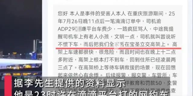 重庆,发生了一起司机半路丢弃乘客的事件。司机嫌弃车费少,路上跟乘客争执、吵架,后来直接把乘客一家老小给丢弃在高架桥上。乘客无奈报警处理,目前,这位司机已经被平台处罚。 据百姓关注7月31日报道称,游客李先生一家前往重庆去旅行,谁知道开开心心的去旅行,居然会发生这样糟心的事情。 这一天,李先生想要打车出发去某地,在网约车司机达到地方之后,李先生一家上车了。上车之后,故事也就开始了。 上车之后,网约车司机就开始抱怨,什么车费比较低,平台收取了较高的费用什么之类的,就是自己这一单根本就赚不到什么钱。 李先生听了之后,也是一头雾水。不知道网约车司机是想要表达什么,于是就提醒司机说,后面还有老人跟孩子,注意一下自己的措辞吧。 谁知道,这么一提醒之后,网约车司机更加恼火了,直接就对着后面的乘客一顿痛骂,各种问候都有,老的小的根本就没法听进去。 然后,更加气人的就是,直接跟李先生一家说,怎么,不想听就给我下去,有本事就别坐车了。说着就直接停在了高架桥上面,直接就把李先生一家给赶下了车子。 李先生下车之后,发现自己一家都在高架桥上,首先对于重庆这边人生地不熟的,然后在高架桥上也根本打不到车子呀,而且高架桥上的车速很快,对于老人跟孩子来说肯定是造成了人身安全威胁的。 没有办法,李先生只能选择了报警,请求民警来帮忙。民警到达之后,先对李先生一家进行了解情况,后续会对这位网约车司机进行调查处理。 事后,李先生赶紧联系网约车平台,及时对这件事进行了汇报,将前后发生的事情都一五一十的作了告知。 7月31日,网约车平台已经对这位网约车司机进行处罚,把司机的账号封号处理,同时对司机罚款50元。 网友称,司机的这样的行为,如果正式诉讼到法院,他是否会面临更加严厉的处罚呢? 因为擅自把客人给丢在车流较快的高架桥上,实在是太过分了,万一发生事故,这件事可怎么解决呢? 1.网约车司机随意把乘客给丢弃在高架桥上,这种行为涉嫌违法吗? 网约车司机随意的将乘客给丢弃在高架桥上,这样的行为已经明确的而构成了违法。 根据《网络预约出租汽车经营服务管理暂行办法》第三十六条规定,网约车司机在行驶中途甩客,这种行为属于违规行为,需要承担行政责任,主管部门可以责令其改正,并且还需要处以50至2000元罚款。如果情节比较严重,可能会面临吊销从业资格的处罚。 根据网约车平台的规定可以知道,网约车在行驶过程中,如果将乘客甩出来,像李先生一家这样,直接被甩在高架桥上,司机的这种行为情节比较严重,将乘客置于危险境地,后期必定会受到法律的严惩。 根据《道路交通安全法》法律规定,高架桥、高速公路禁止行人通行,司机将乘客甩在这些快速道路上直接威胁乘客的人身安全,涉嫌违法。 如果引发了交通事故,司机可能构成以危险方法危害公共安全罪或者交通肇事罪,最高将会被判处死刑。 根据法律规定,我们知道高架桥属于快速行驶道路,非常危险。不过虽然本案李先生一家没有发生交通安全事故。 如果发生这类情况,那么这个网约车司机难逃其咎,必定会被法律予以严惩,最高处罚会被处以死刑。所以可见其行为的恶劣性。 2.网约车随意辱骂乘客,这种行为涉嫌违法吗? 网约车司机随意辱骂乘客,这种行为明确涉嫌违法。 根据《治安管理处罚法》的法律规定,辱骂乘客构成公然辱骂他人,公安机关可以对司机处以5日以下拘留或者处以500元以下罚款。情节严重者会被处以5-10日拘留并且追加罚款。 同时,司机对乘客辱骂,涉嫌侵犯乘客名誉权,需要承担赔偿精神损失等民事责任。 另外,根据网约车平台规定,司机违反了平台服务协议,平台可以采取扣除服务费、罚款或者永久封号等处罚。 公然辱骂乘客,这位网约车司机一上车,不顾后排的老人跟小孩,就开始辱骂,谩骂,这种行为已经涉嫌侵权,构成违法。 在追究其法律责任之后,必定要得到法律的严惩。 大家面对这样的事件,心理肯定感慨良多。 很多网友说,作为旅游城市,网约车司机应该作为城市的明信片,树立好文明城市的良好形象,但是,实则不然。 对于此,您有什么看法呢? #头号创作者激励计划#
