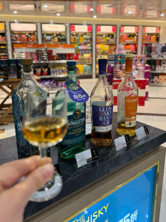 往里走两步,居然有免费品鉴台!顶级威士忌任尝!🥃精爱好者狂喜!我tasting了Glenmorangie 入口🍯蜂蜜、香草、熟透的水果香!超丝滑层次感绝了!爱了!