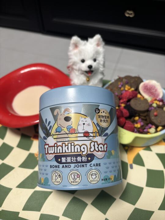 —— ee们 宝宝平时的运动量很大 而且经常来回蹦蹦跳跳的 对骨骼、关节的养护是不可或缺的 麻麻这次给我带回来的是TwinklingStar的壮骨粉 ✅含有甲鱼II型胶原蛋白 这可是对关节修复起到直接作用的 ✅不仅可以强壮骨骼 也会预防关节损伤 ✅日常营养摄入 增强体质 关节养护是狗狗们一生的课题 要从小就开始预防 宝宝已经马上就要三岁了 要更加注意关节和骨骼的健康了 保护关节大作战 从宝宝做起!