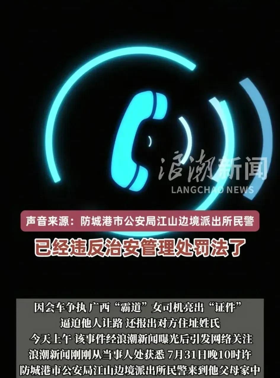 #奔驰司机“亮证”逼对方让路# 为“逼”让路“亮证”,这不是特权是什么?网友发视频让大家评评理的时候派出所找上门了 22日那天在广西防城港那道上,路不算宽,网友开着车,对面来了辆奔驰,知道不好错车,主动就往边上靠了靠,心里想的是“能让就让,别堵着道”。 结果呢?奔驰里那女的,摇下车窗就不乐意了,意思是还得再往后倒。您想啊,这时候谁心里能痛快?本来就让了一步,再倒,好像自己占了多大便宜似的,网友自然就没同意。 哎,这就有意思了,女司机噌地掏出个红本,上面还带着“执法”俩字,撂下一句“要不然,我就拿证了哦!”——您听听这口气,这不像是商量,倒像是拿个什么东西压人。更邪乎的是,她居然能一口报出网友的姓,连家住哪里都摸清了。 您说邪门不邪门?就凭个车牌,个人信息摸得这么透,换谁不得后背发凉?本来是个让车的小事儿,硬生生给整出点“特权压人”的味来。这往后啊,谁还敢在路上“让一步”?怕是都得琢磨琢磨,对面来的到底是人是“神”喽。 网友心里不爽,就把视频发到了网上。昨天,警方找上门了,要求网友删视频并道歉。这说明“逼路姐”确有能耐。 据当事人透露,7月31日晚10时许,防城港市公安局江山边境派出所民警曾前往其父母家中,通过电话要求他删除相关视频,并向奔驰女司机道歉,此后续处理方式引发舆论对执法边界与公权力干预的讨论。目前,当事人已就个人信息被泄露及威胁行为向当地警方和相关部门投诉,事件正在进一步调查中。 免责声明:文章的描述过程、图片均来源于网络,此文旨在倡导社会正能量,不存在低俗等不良引导。如涉及版权或者人物侵权问题,请及时联系 @英雄拒绝黄昏 @英雄拒绝黄昏之廖志伟 ,我们将第一时间删除内容!如有事件存疑部分,联系后会即刻删除或修改。