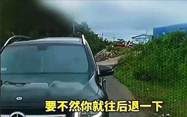 广西防城港奔驰“亮证姐”让路事件,引起巨大争议! 本来是两辆车在狭窄的乡间小路上