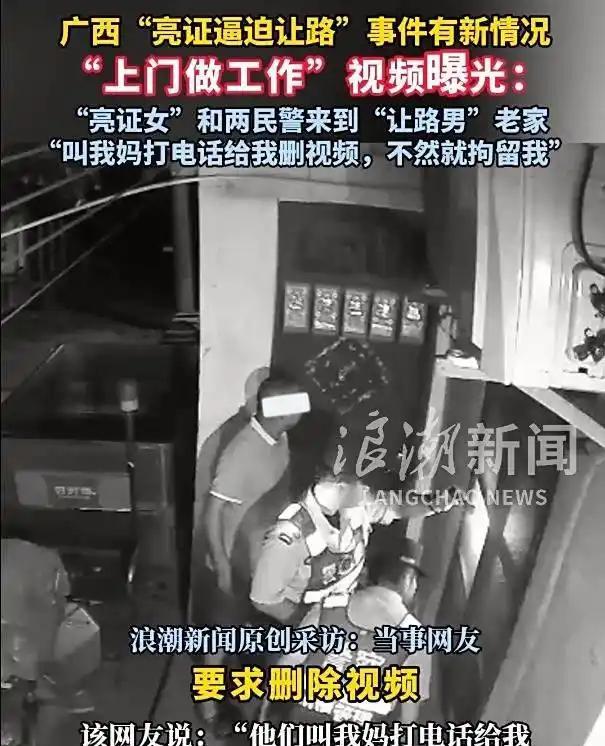 广西防城港奔驰“亮证姐”让路事件,引起巨大争议! 本来是两辆车在狭窄的乡间小路上让路的一件小的不能再小的的事,却引发了特权之争。 乡间道路狭窄,互相退让一步,这事轻松解决,然而面对小伙已经靠近路边无法再避让的情况下,亮证姐却强迫小伙后退,而后面还有车辆,根本没有后退条件,而此时奔驰车后面没有车辆,如果后退的话,那也是奔驰车后退。亮证姐不顾实际情况,强硬要求后退,见小伙毫不畏惧,与其顶撞几句,怒不可遏的亮证姐下车,一脸严肃的说,你不退让,那我要亮证了,然而小伙面对这种情况,毫不退缩,依然坚持不退让,为小伙行为点赞,中国就需要更多这样不畏强权的人。 然而,后面发生的事却出乎意料,之后奔驰车上男子很快就查出了小伙的姓名和家庭住址,这是随身携带者检查设备啊,我们知道无辜查别人信息那是严重违法行为,这是明令禁止的。 事后,小伙感觉憋屈,于是打12345投诉,并把行车记录仪视频发到网上,这下可捅了马蜂窝,很快有警察以侵犯隐私为名要求小伙删除视频,小伙不屈从,于是出现了奇葩一幕,有关人员带着两名警察到小伙老家,胁迫小伙母亲,要求小伙删视频道歉,否则将其拘留,小伙看到母亲这样,内心非常愧疚,最终小伙在胁迫下不得不发视频道歉。 这事还没有完,当前小伙视频账号相关视频无故都被下架。视频下架这件事性质更加恶劣,一个普通老百姓维权,而相关特权人能够通过手段将其视频下架,太不可理喻了。 这一事件已经上升到公权与特权之争,不把特权关进笼子里,那么公权将成为一张白纸。
