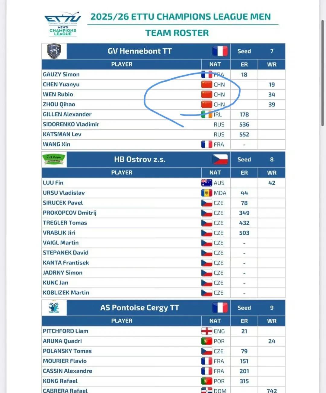 2025年中国有七位运动员准备去欧洲留学。 2025-2026新赛季,中国队将派