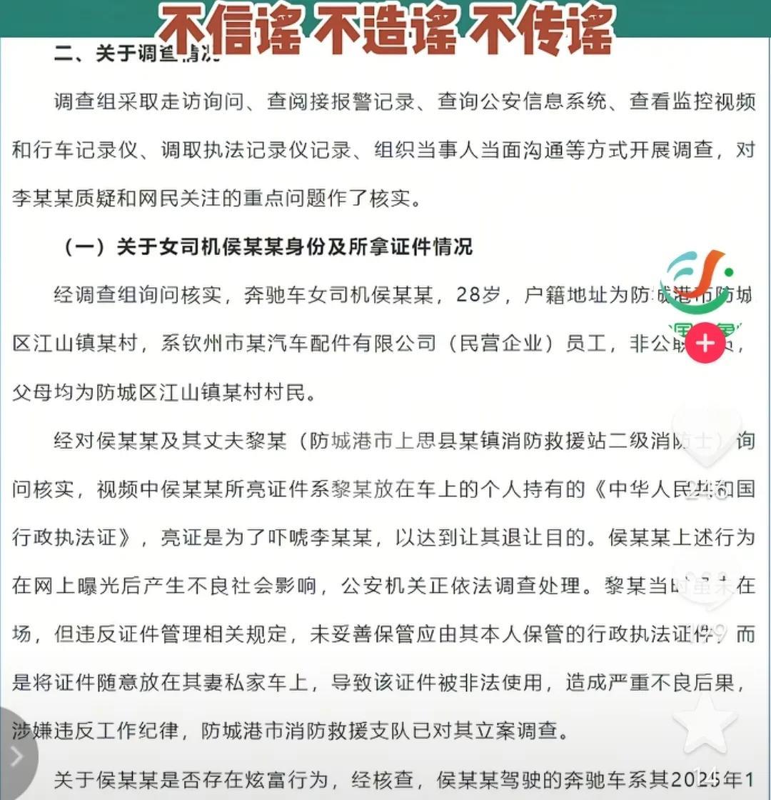 亮证姐的调查结果出来了,总结起来有这几点。1,亮证姐并不是公职人员,而是钦州某汽配公司的员工。 2,亮证姐之所以知道男子的家,是因为当时车上她的父亲认识男子的父母,她家距离男子家仅800米距离。而亮证姐并不认识男子,男子也不认识亮证姐。 3,亮证姐拿的不是她的证件,而是她丈夫的,她丈夫是防城港当地的二级消防士。 4,之所以会有民警找上门,是因为亮证姐的父亲要求民警一同前去解决事情。 5,之所以会让男子删除视频,是因为电话中的民警表述不够严谨规范。 6,之所以挂断记者电话,是因为接话人不够业务能力不熟。 这还真是让人没有想到这两人家居然相隔不到800米,这年轻人常年外出不认识的也是很正常。