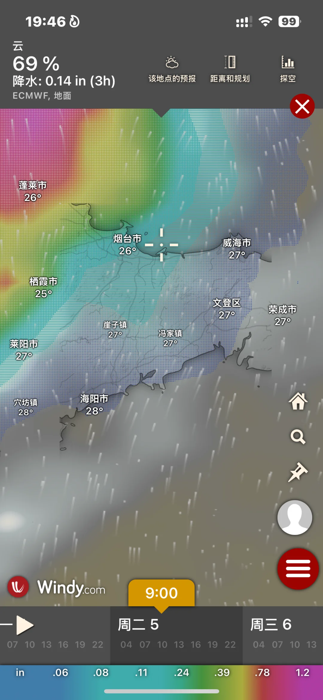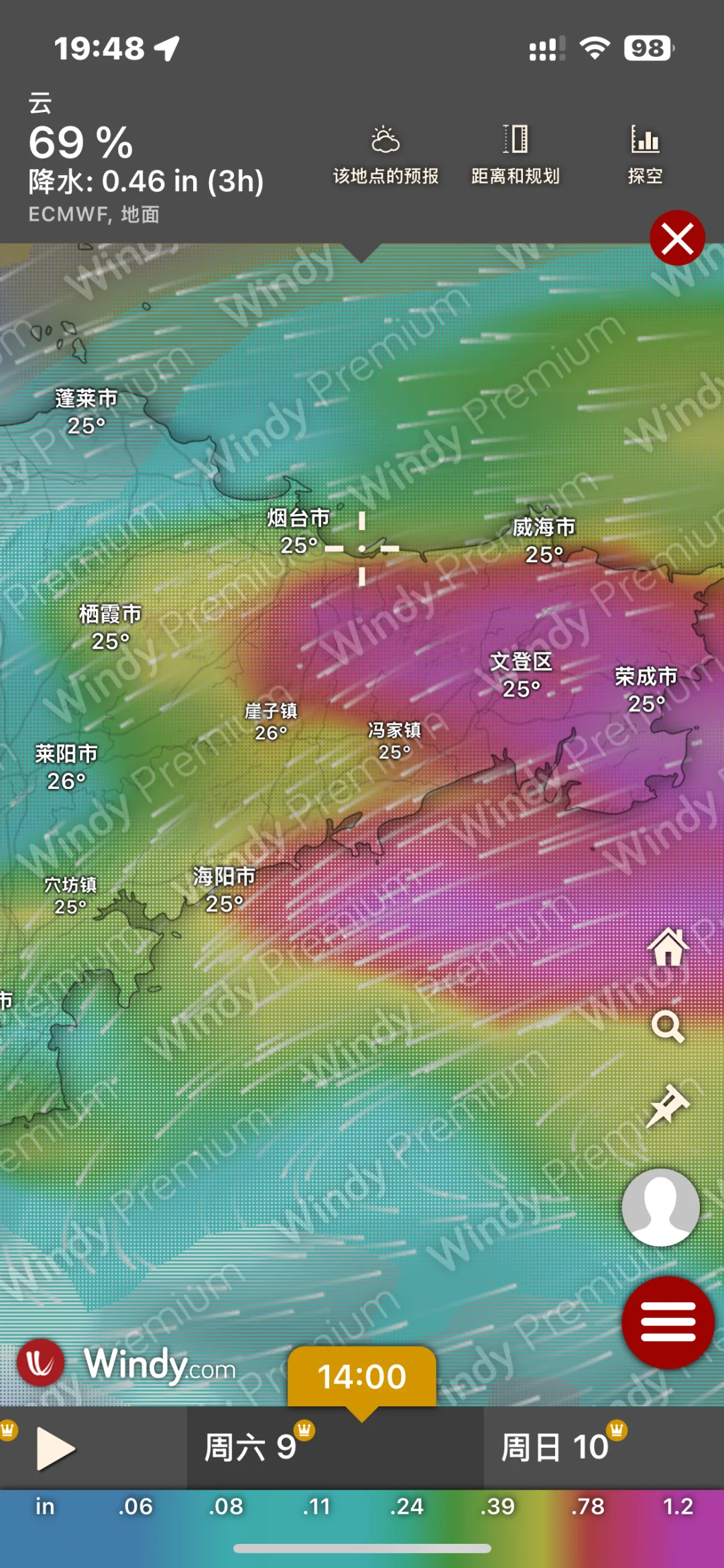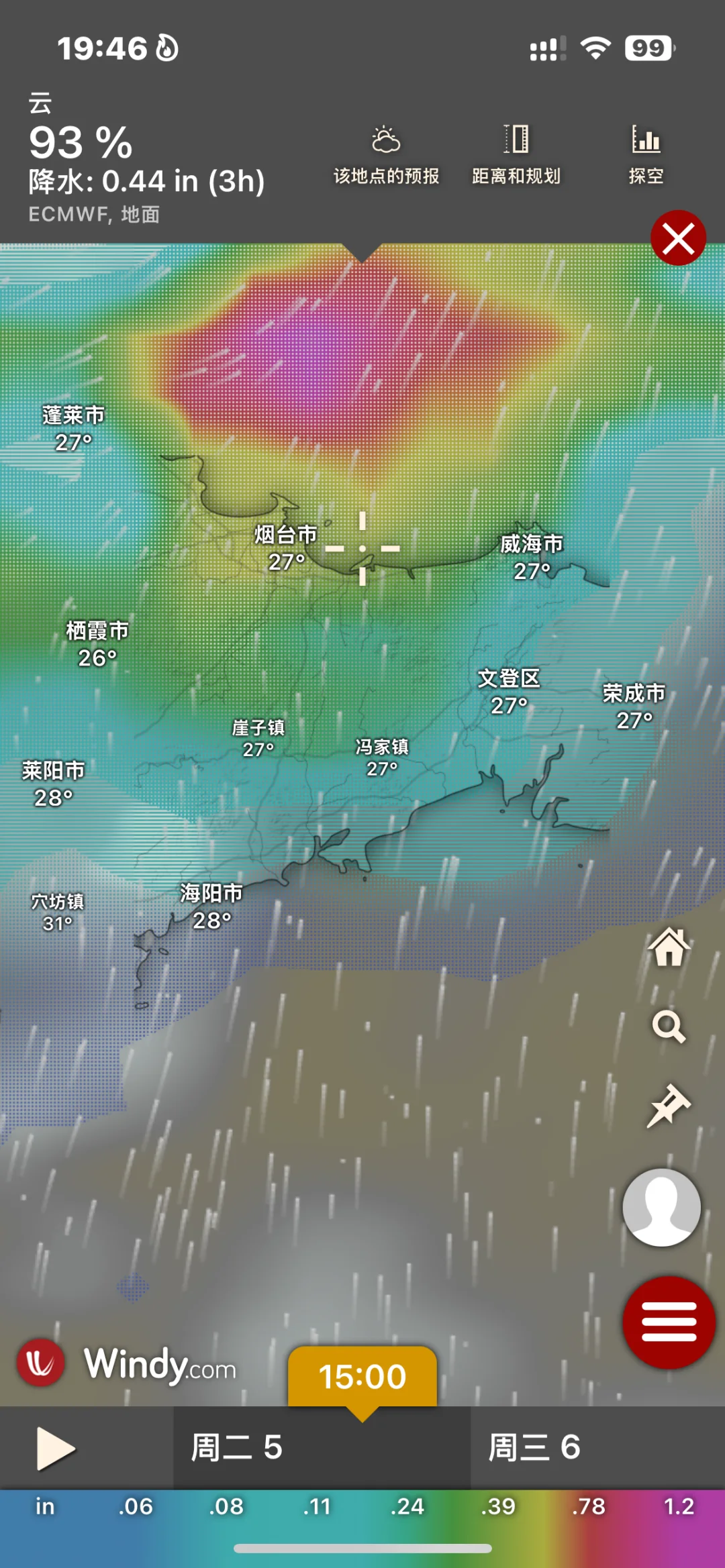 Hi.宝子们好,欢迎来烟台旅游观光!天气基本三天内准确度高!