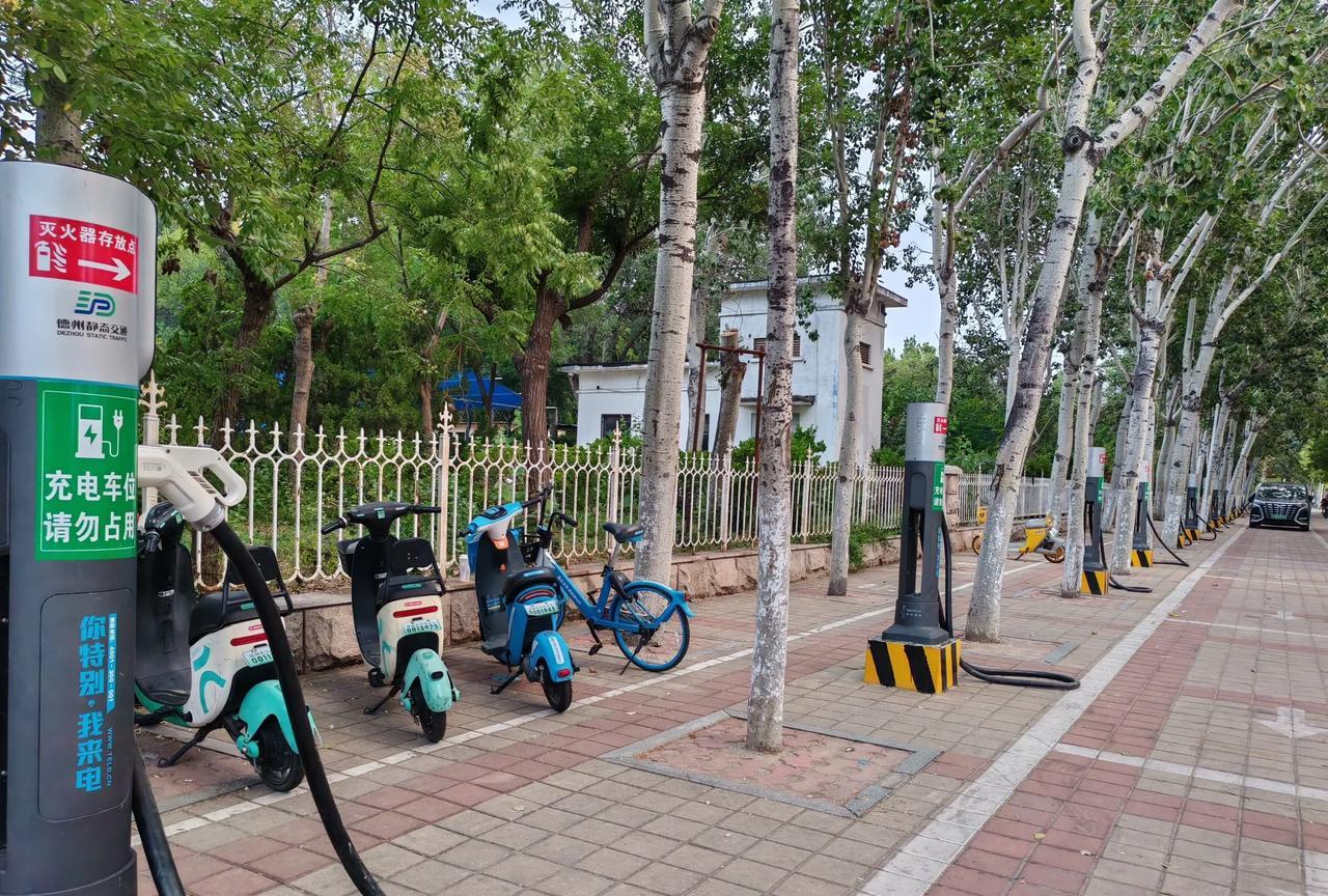 德州市区很多公共停车位改为充电桩车位! 这些充电桩位置大多在公园周边,感觉非常合