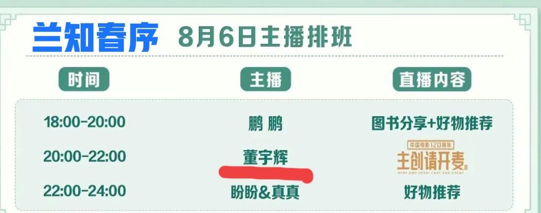 现在董宇辉很规律的每周出现3天 新的排班表出炉,在与辉同行播2天 在兰知春序播1