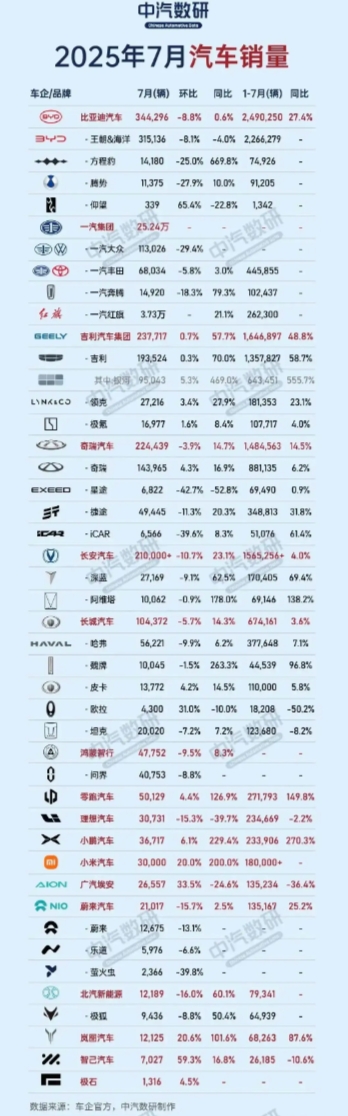 比亚迪销量跌了不少,这个月只有34万,上个月38万呢,大概少了四万辆。 吉利还可