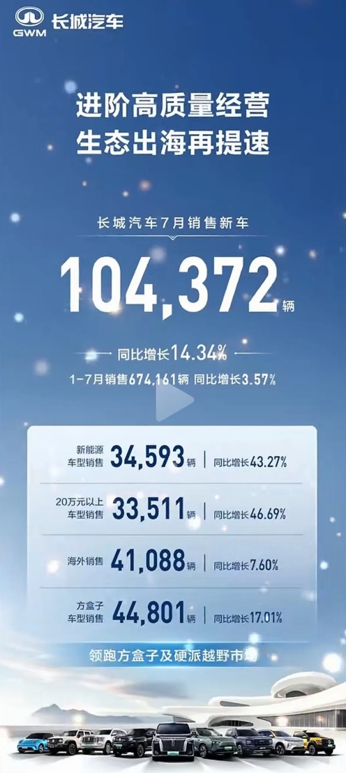 比亚迪销量跌了不少,这个月只有34万,上个月38万呢,大概少了四万辆。 吉利还可以是为数不多继续增长的,吉利新能源和比亚迪的产品线比较像,抢了不上比亚迪的量。 奇瑞跌的不多,主要还是出口比较稳。 长城表现很好,对上月也就少了几千台。