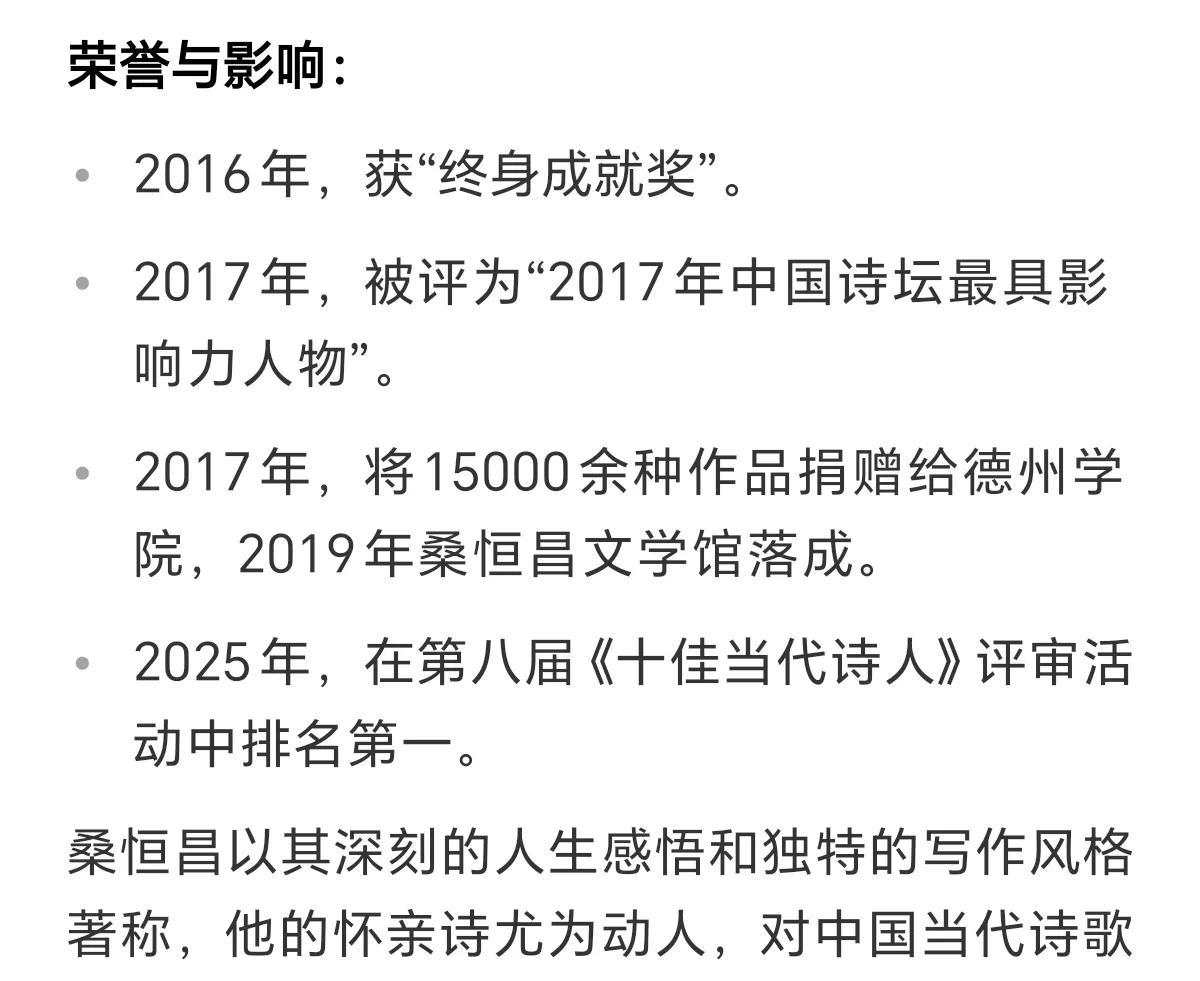 武城名人辈出,中国第一个文状元就是出自武城,他的名字叫孙伏伽,后来陆陆续续出了很多历史文人墨客。 当今也有不少名人,除了影视歌星马天宇、西游记猪八戒扮演者马德华,美女张雨绮等等外。 其实武城还有一位著名诗人,他叫桑恒昌。 桑恒昌,1941年12月,出生于武城县鲁权屯镇桑庄村。由于高中期间学习成绩优秀,1961年,年仅20岁的桑恒昌被保送到武汉空军雷达学院深造,后到西藏拉萨服役,没有想到一场大病结束了军旅生涯,转业到济南地方企业工作,后从事诗歌创作,成为当代著名诗人。现为中国作家协会会员,中国诗歌学会副秘书长。山东诗坛第三代领军人物,2025年在第八届《十佳当代诗人》评审活动中排名第一。 图五,桑恒昌为当地一家酒厂写的一首小诗,诗虽很短但很有内涵,字体写的很方正,中规中矩,就像其本人的性格一样。