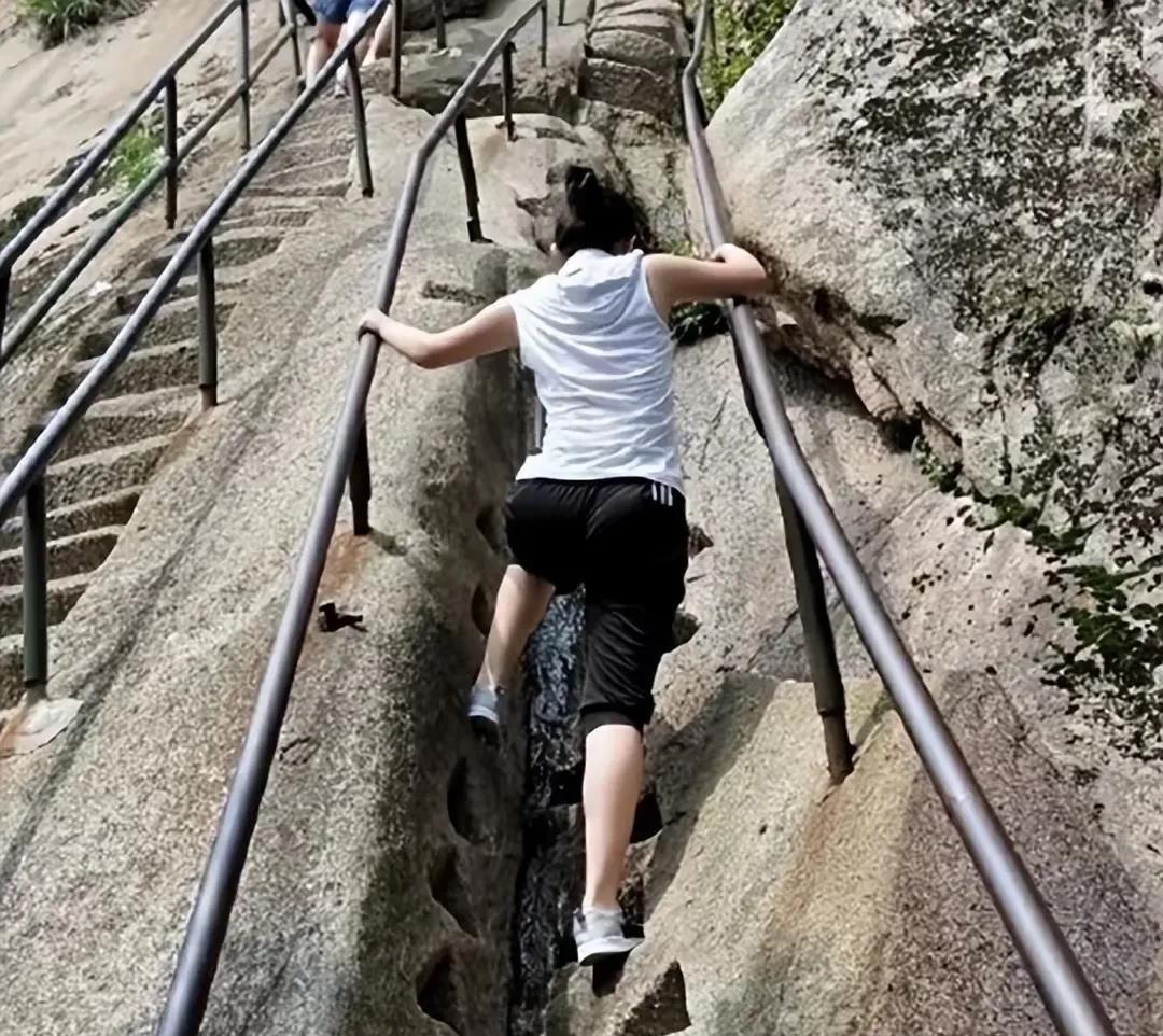 我看有的评论说护栏不够高,景区可能有责任,但是我看了那个照片,我就知道了,那里护栏不可能太高,山很陡,人在爬的时候,身体前倾,那个高度是挺适合扶握的。