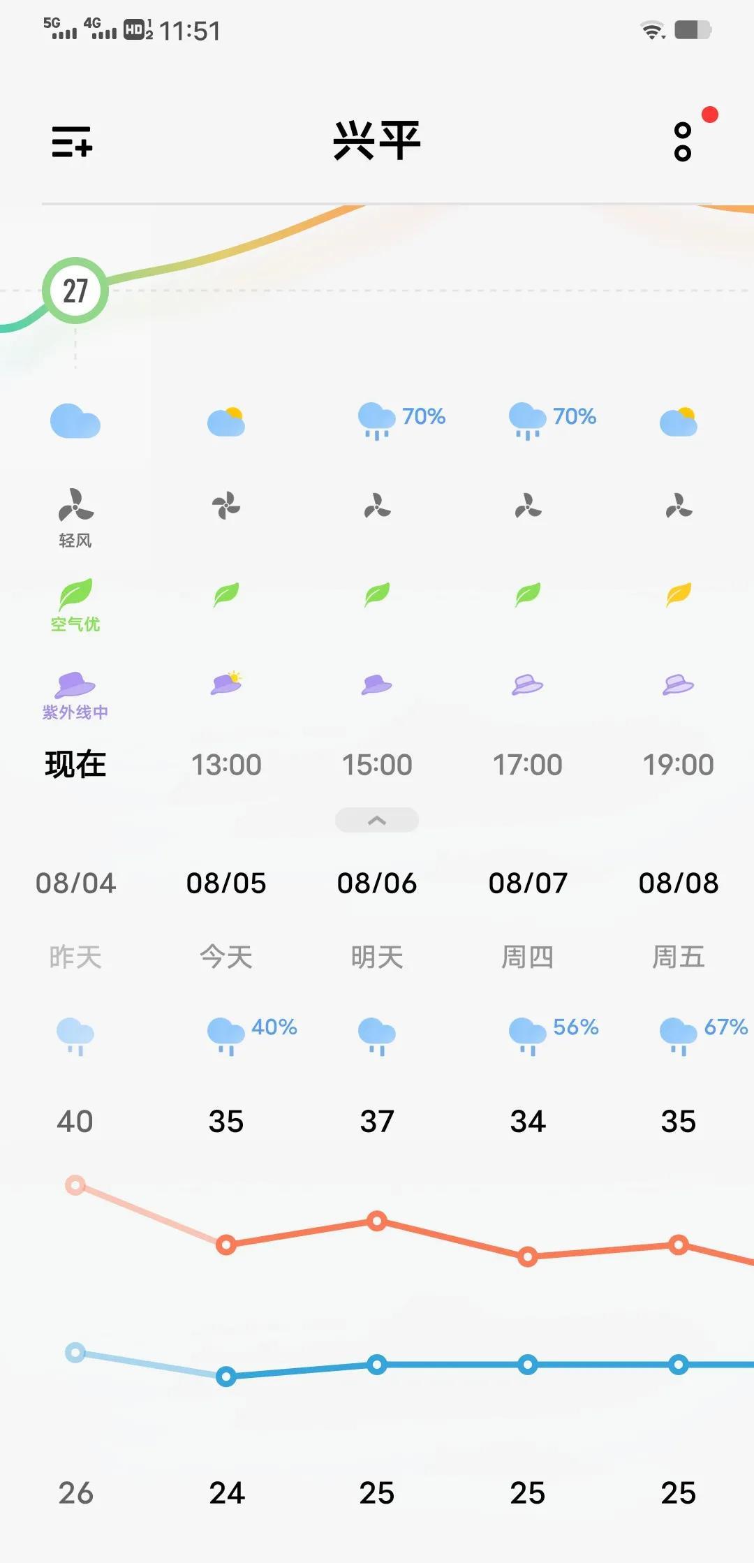 我的天啊!老天爷这是大发慈悲!听到民间的呼声了吧? 刚才查看了一下这几天的天气情况,居然天天下雨!没有大太阳天气了!虽然看到下面的气温也不低,居然还有37度的高温。 小雨估计也就下一点零星小雨吧!马上就要立秋了,这一下雨秋天不就按时到来了吗? 凉爽的日子要到来了!空调终于不用开了,电费也不会那么大了。真是太好了! 说说你们那里的天气怎么样! #下起大雨天# #天气预报# #今天天气预报# #下小雨天气# #今个天气爆爽#