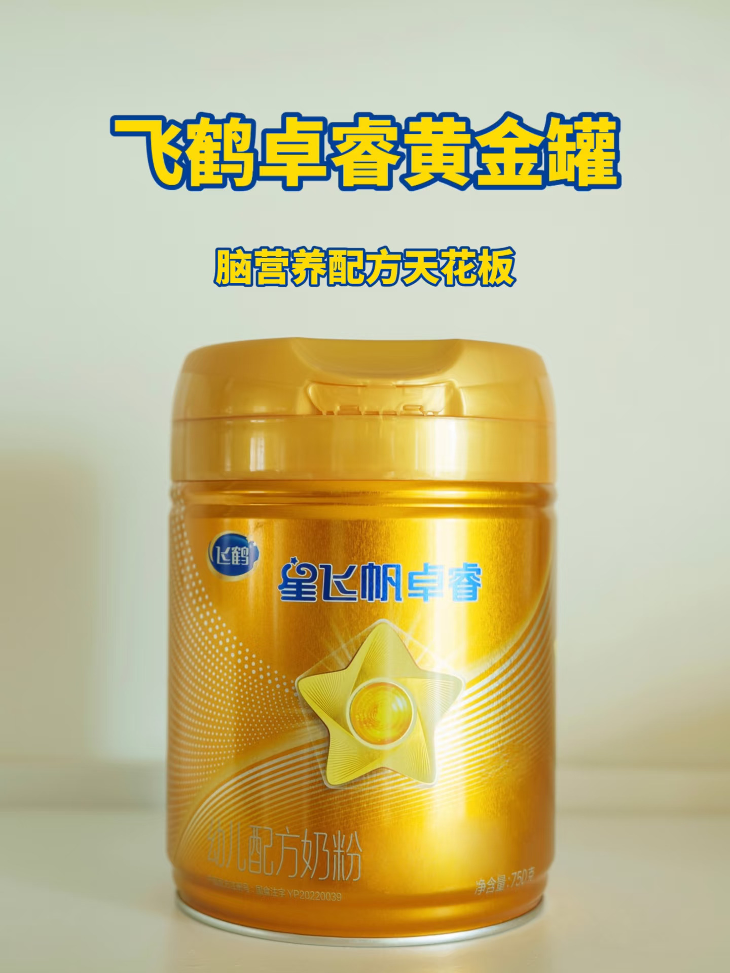 飞鹤卓睿黄金罐科学添加了5大脑磷脂,搭配黄金配比1:1.7的DHA和ARA组成脑黄金组合,更有叶黄素、2.5倍优量胆碱、6重HMOs母乳低聚糖,一罐覆盖黄金期所需关键营养~