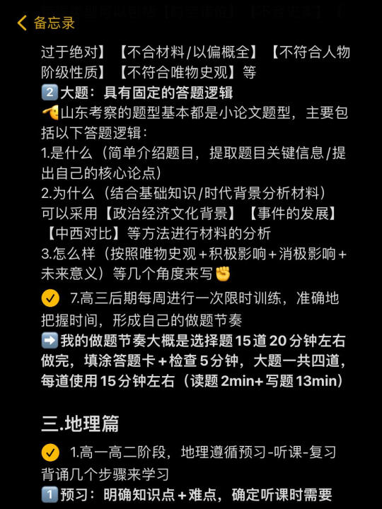 哈喽大家好! 今天给大家出一期政史地270+要有多努力 之前分享过【政史地学习方法】【政史地学习技巧】【历史小论文答题模板】啦 所以今天想给大家分享一下要有多努力才可以取得政史地270+的成绩(赋分制,91分为省前3%) 📝预计之后会更新: 1.地理答题模板(人文+自然地理) 2.政治答题模板 3.历史常规题型和史料分析题答题模板