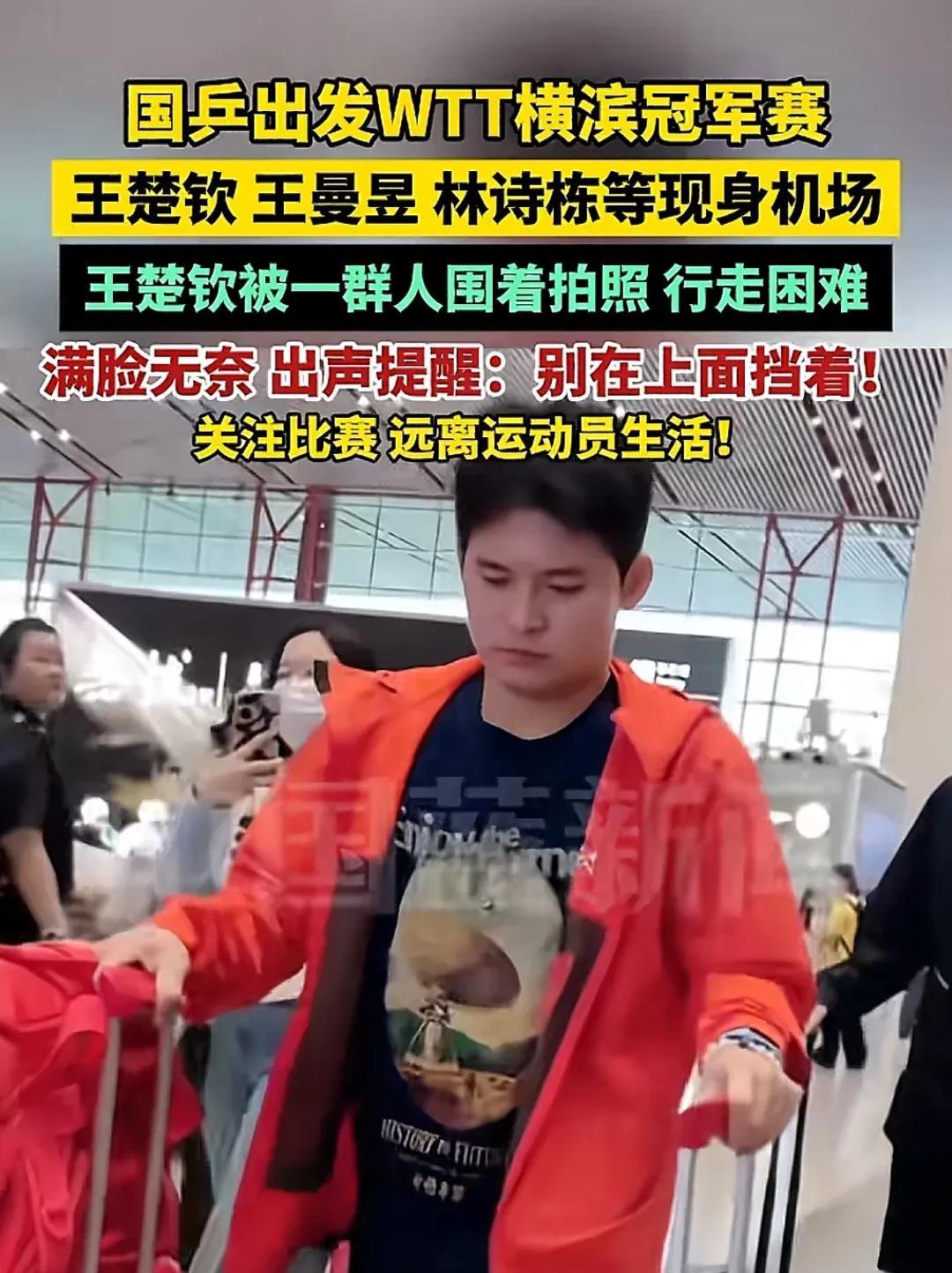 上午出发横滨的国乒队员已经顺利到达了,上午网友拍到国乒队员出发画面,王楚钦依旧全